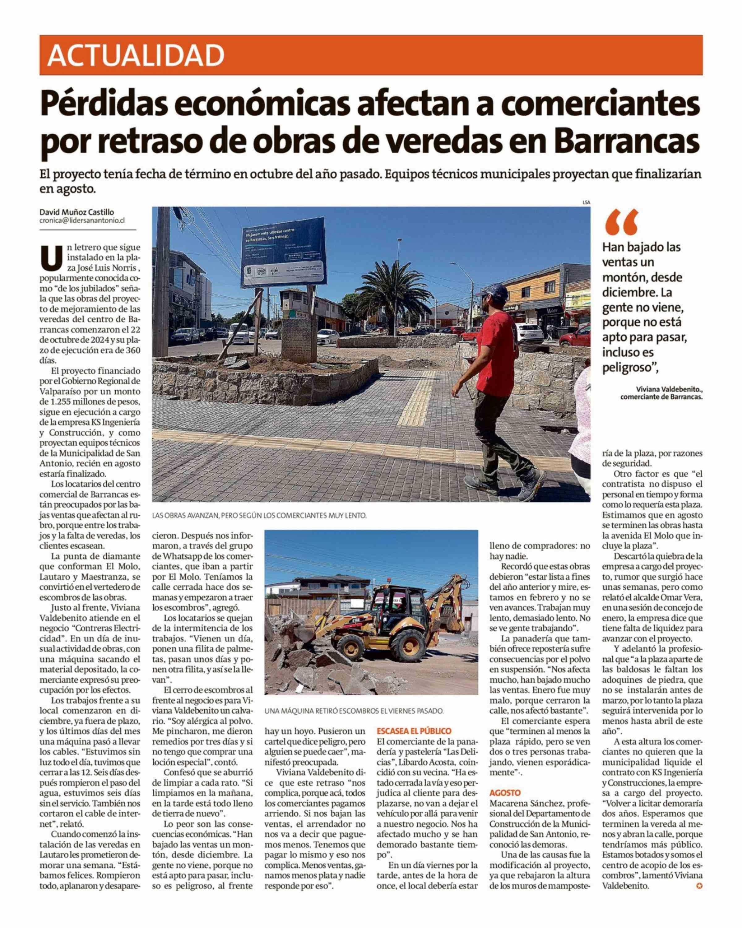 Título: Pérdidas económicas afectan a comerciantes por retraso de obras de veredas en Barrancas