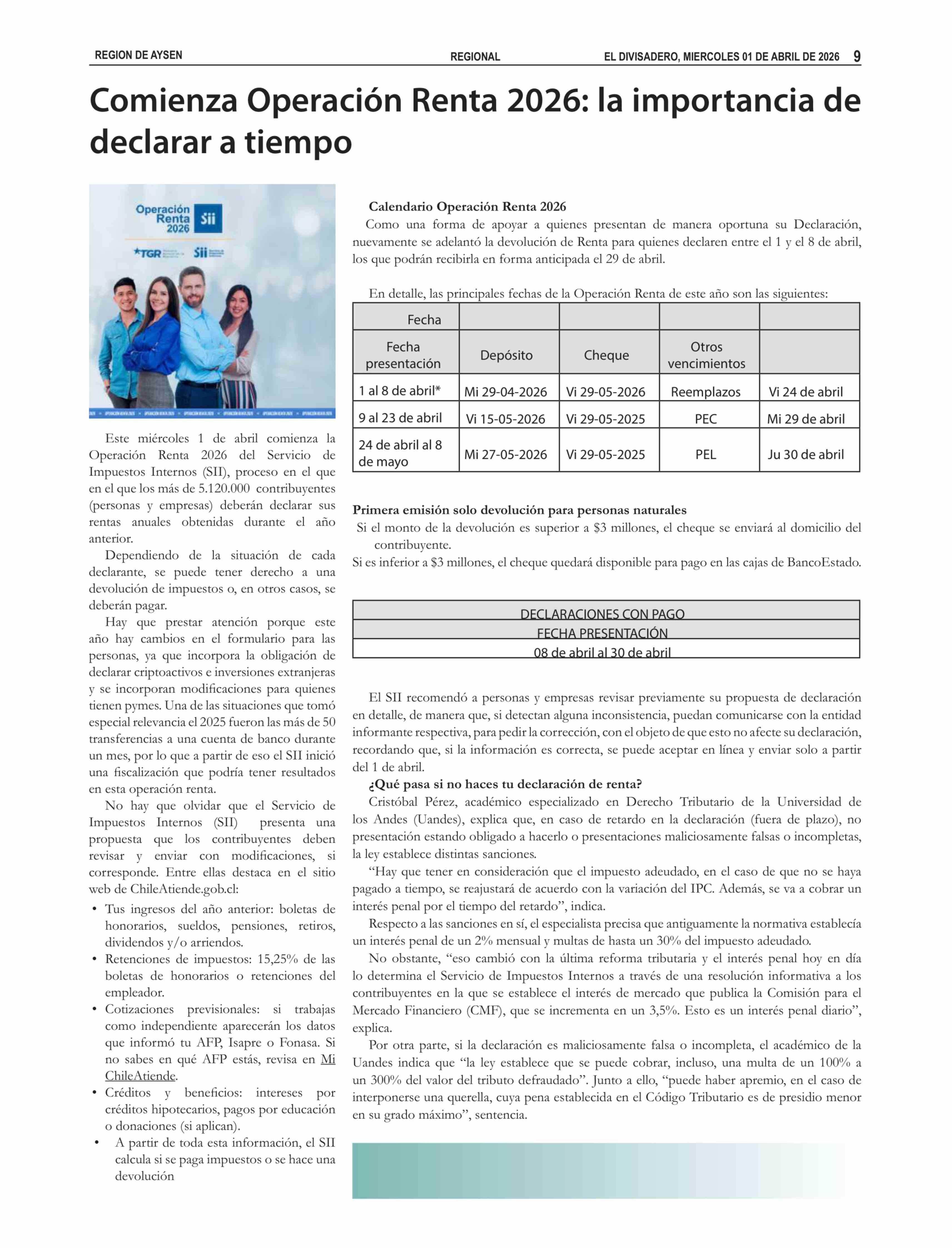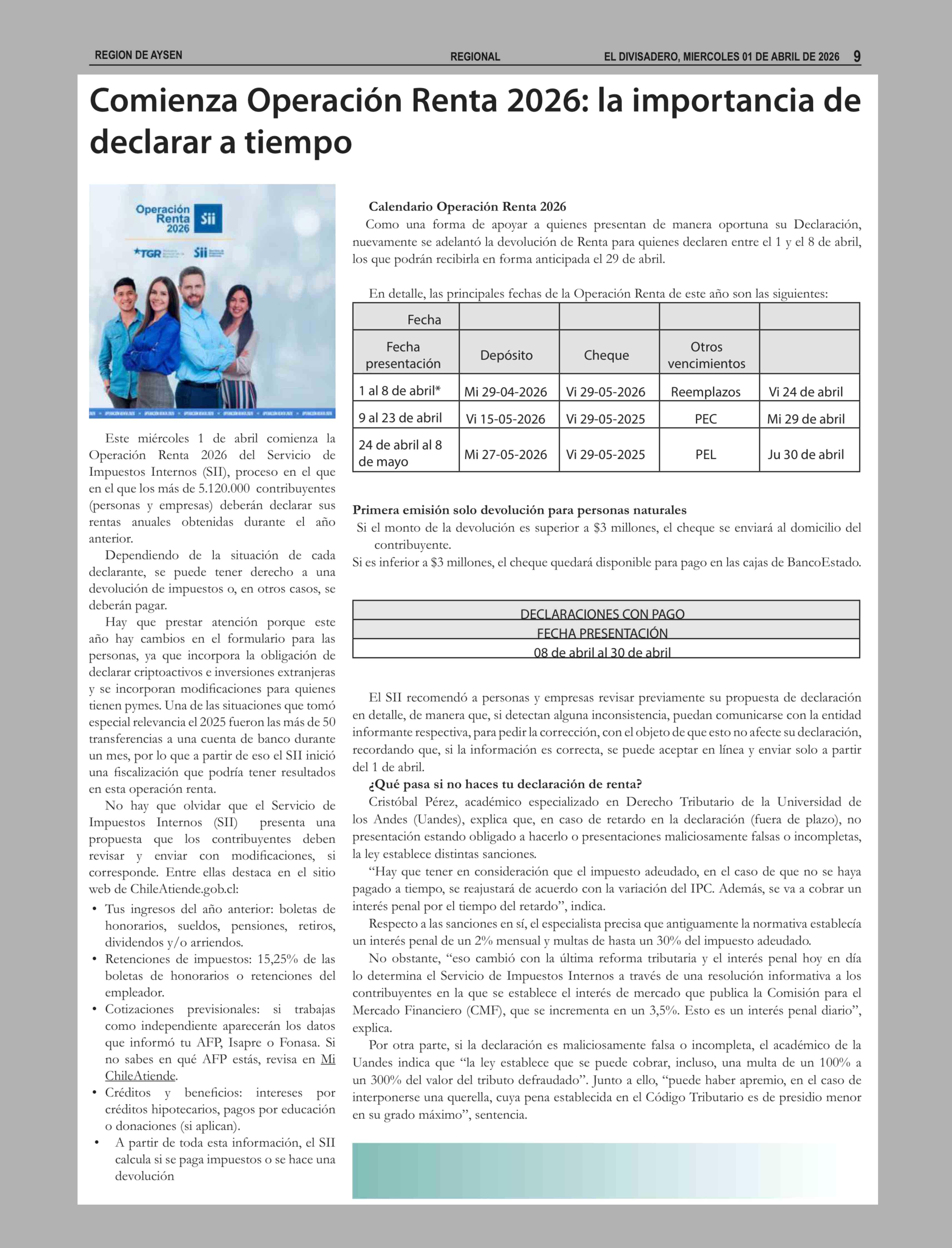 Comienza Operación Renta 2026: la importancia de declarar a tiempo 01-04-2026 El Divisadero |