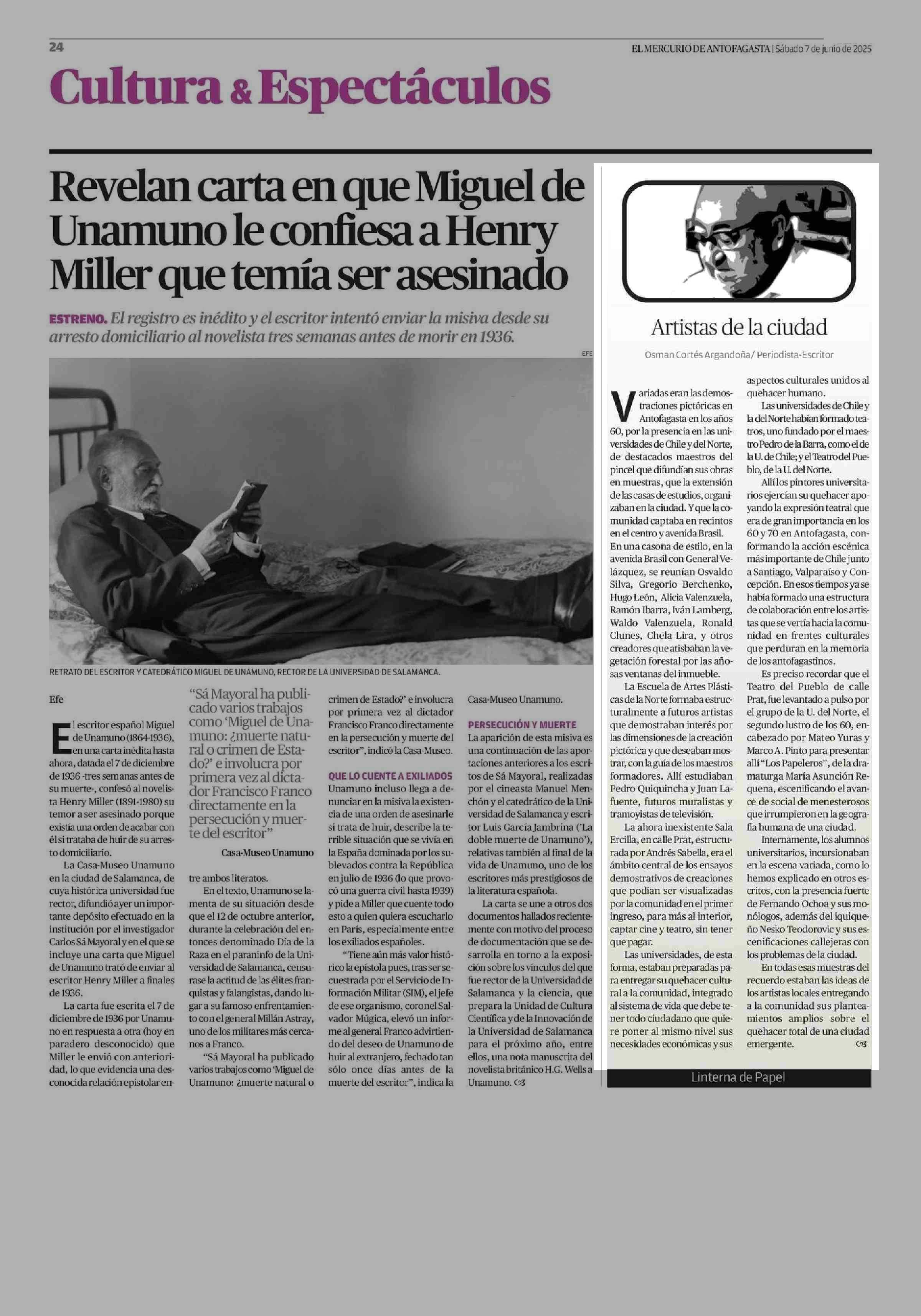 Columnas de Opinión: Artistas de la ciudad 07-06-2025 El Mercurio de Antofagasta |