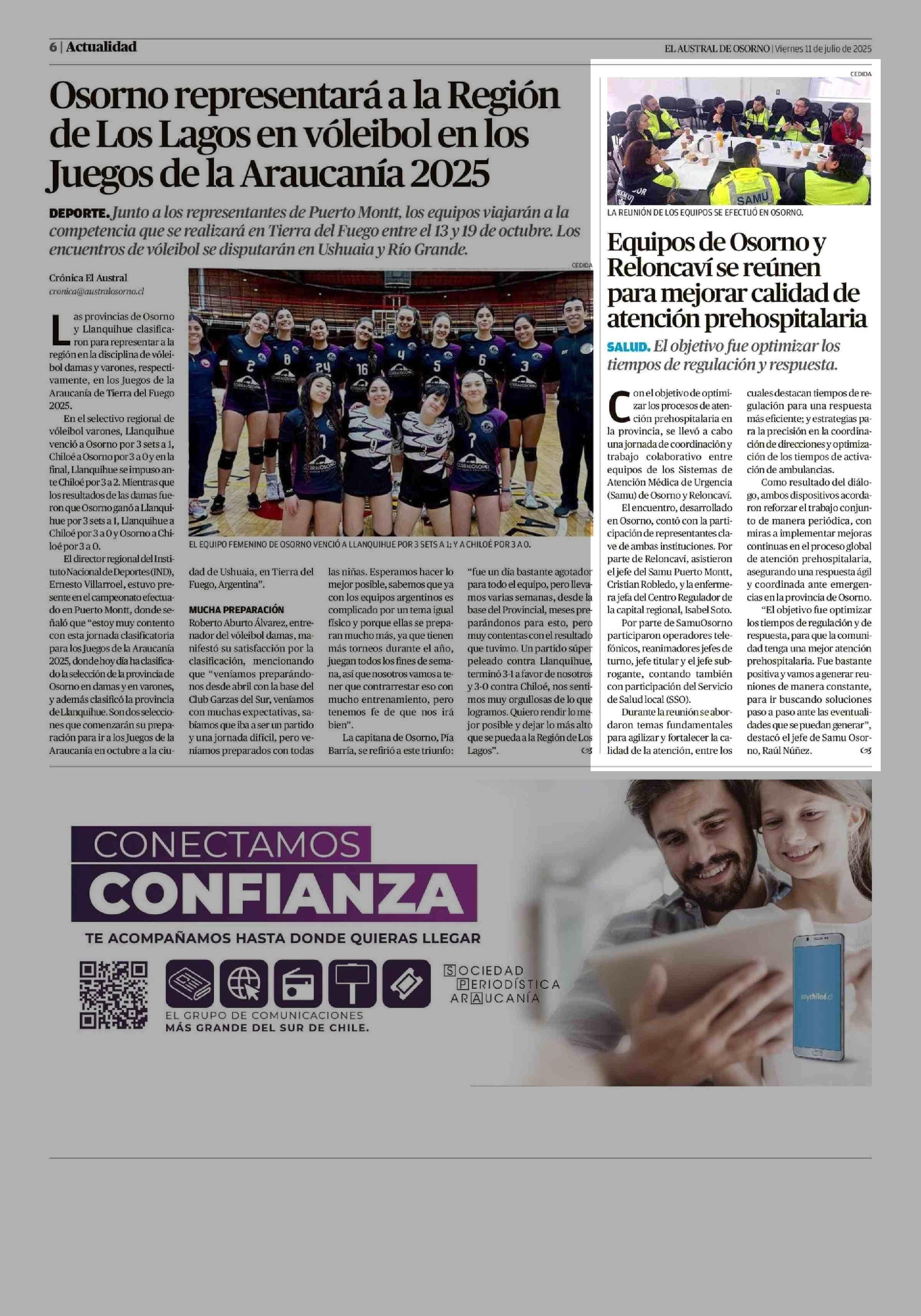 Equipos de Osorno y para mejorar calidad de atención prehospitalaria Reloncaví se reúnen 11-07-2025 El Austral de Osorno |