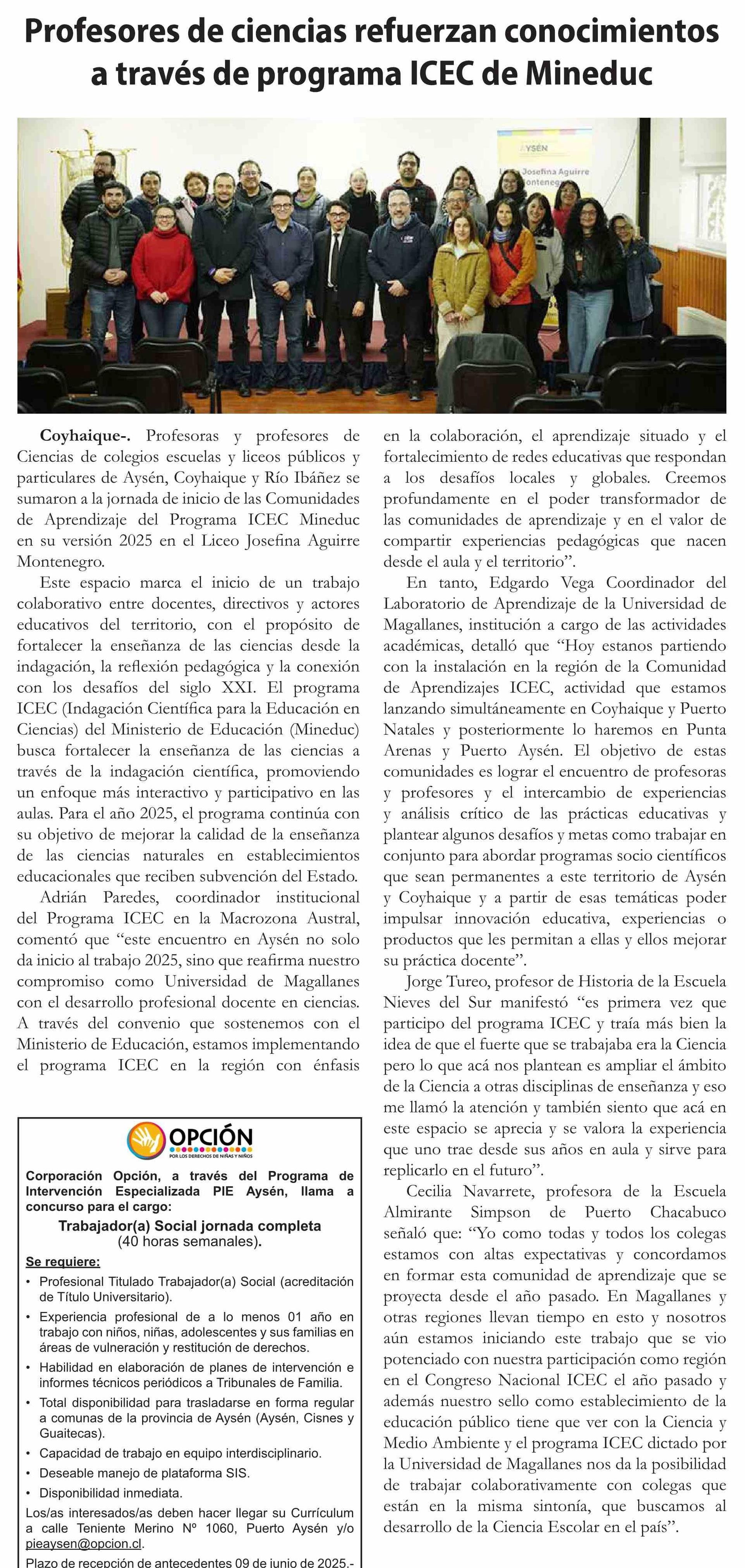 | Fecha: | 29-05-2025 | Sector: | Noticia general | Región: | Región Aysén del General Carlos Ibáñez del Campo |