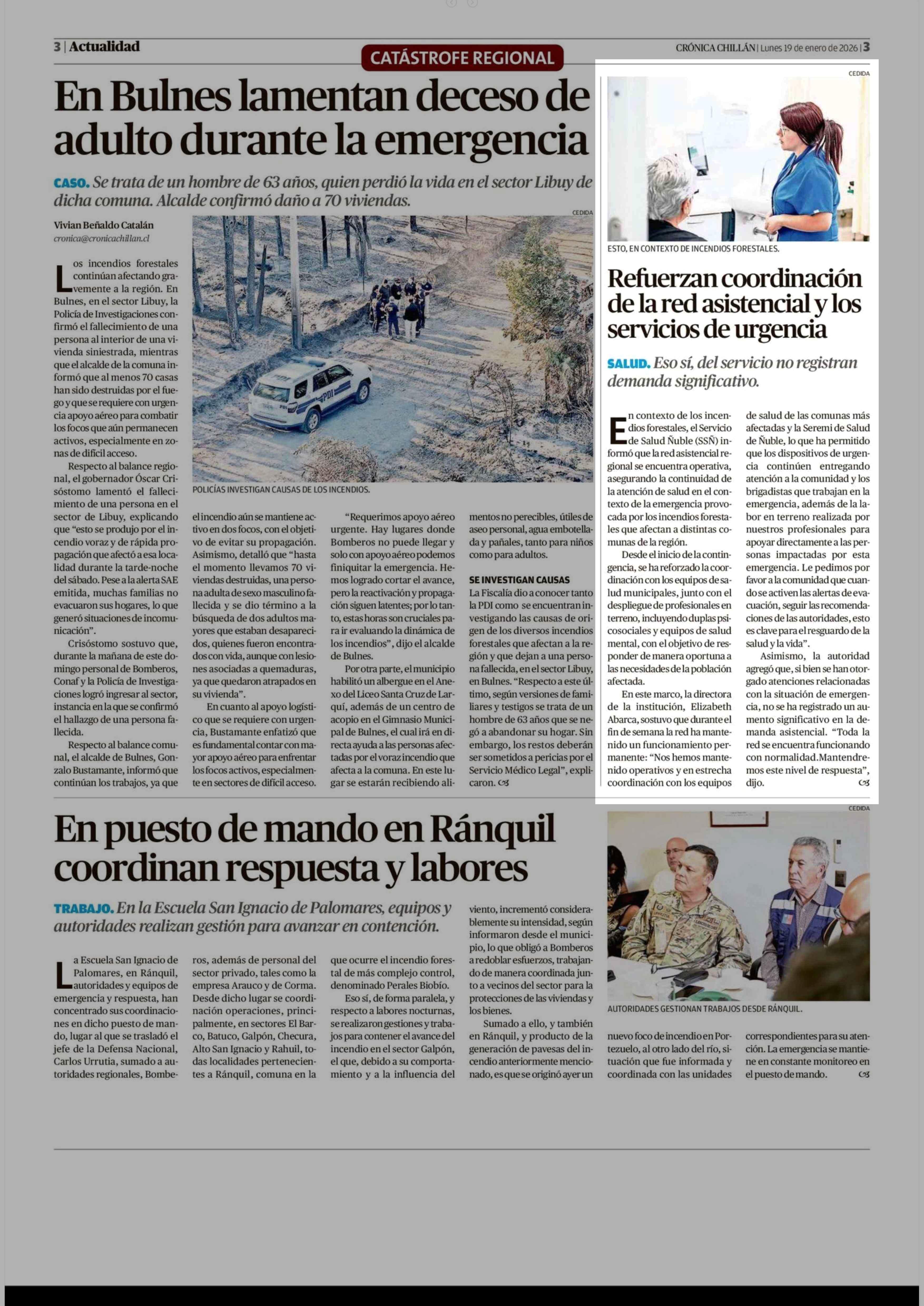 Refuerzan coordinación de la red asistencial y los servicios de urgencia 19-01-2026 Crónica de Chillán |