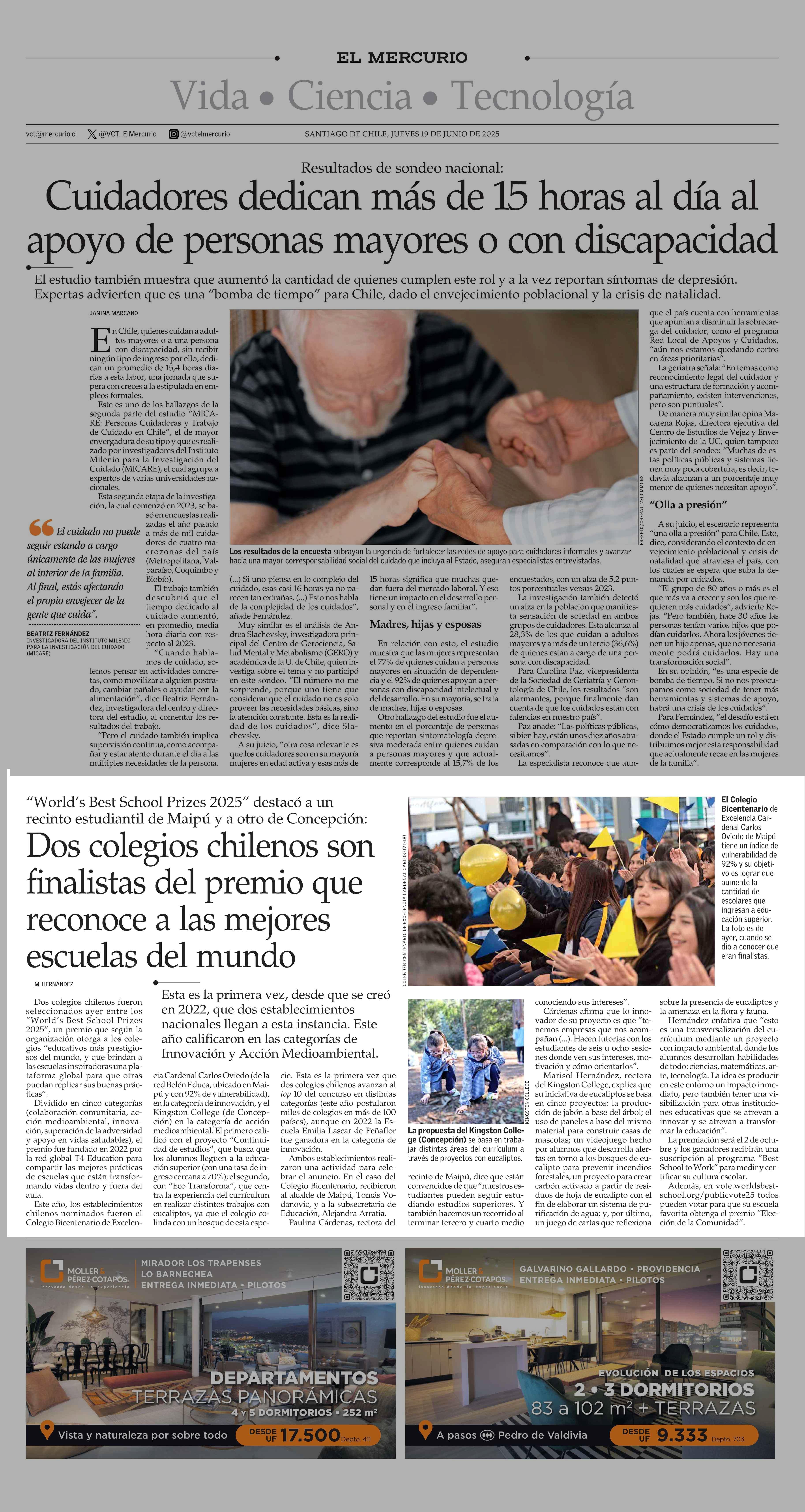 Dos colegios chilenos son finalistas del premio que reconoce a las mejores escuelas del mundo 19-06-2025 El Mercurio |