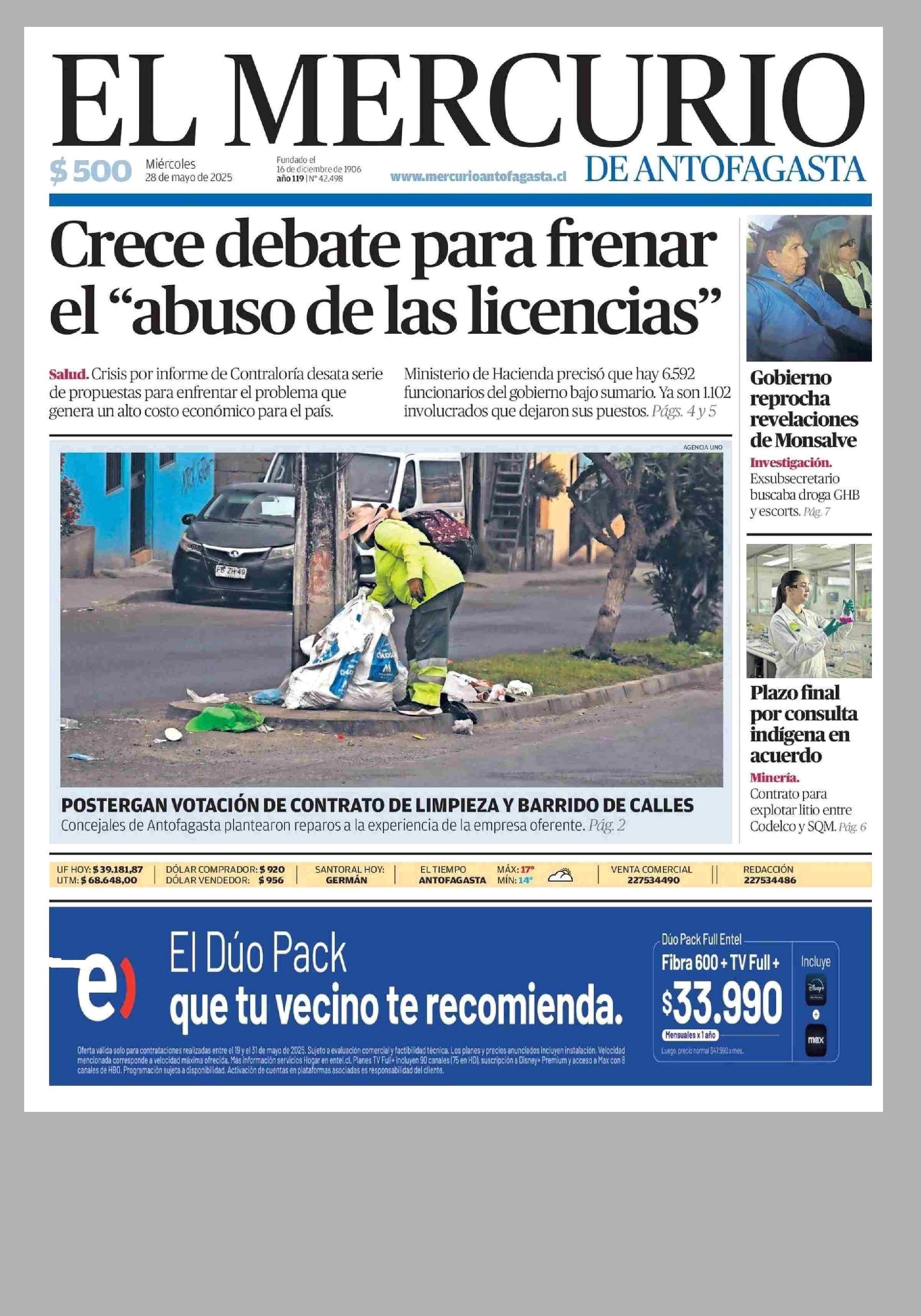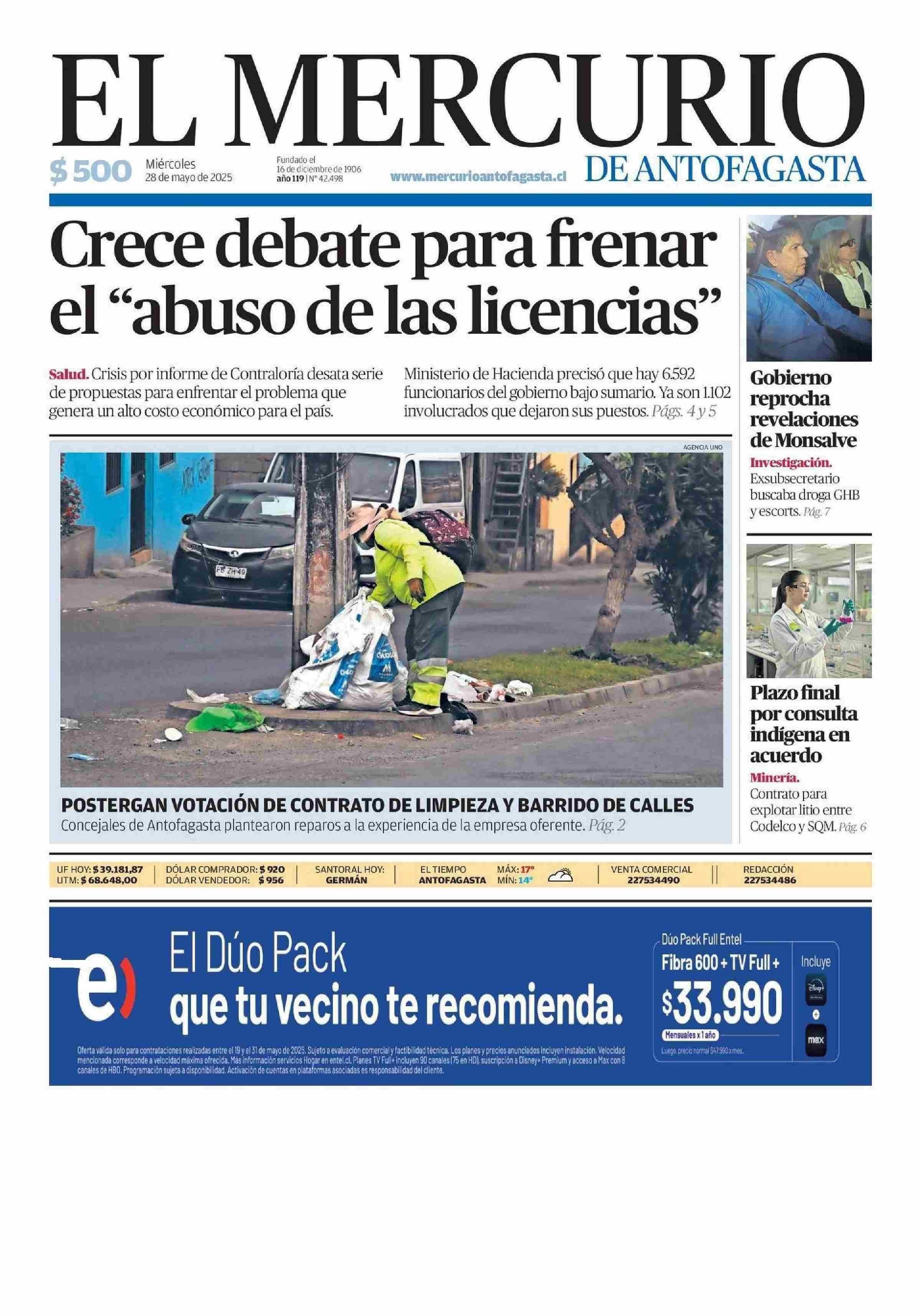 | Fecha: | 28-05-2025 | Sector: | Portada | Región: | Región de Antofagasta |