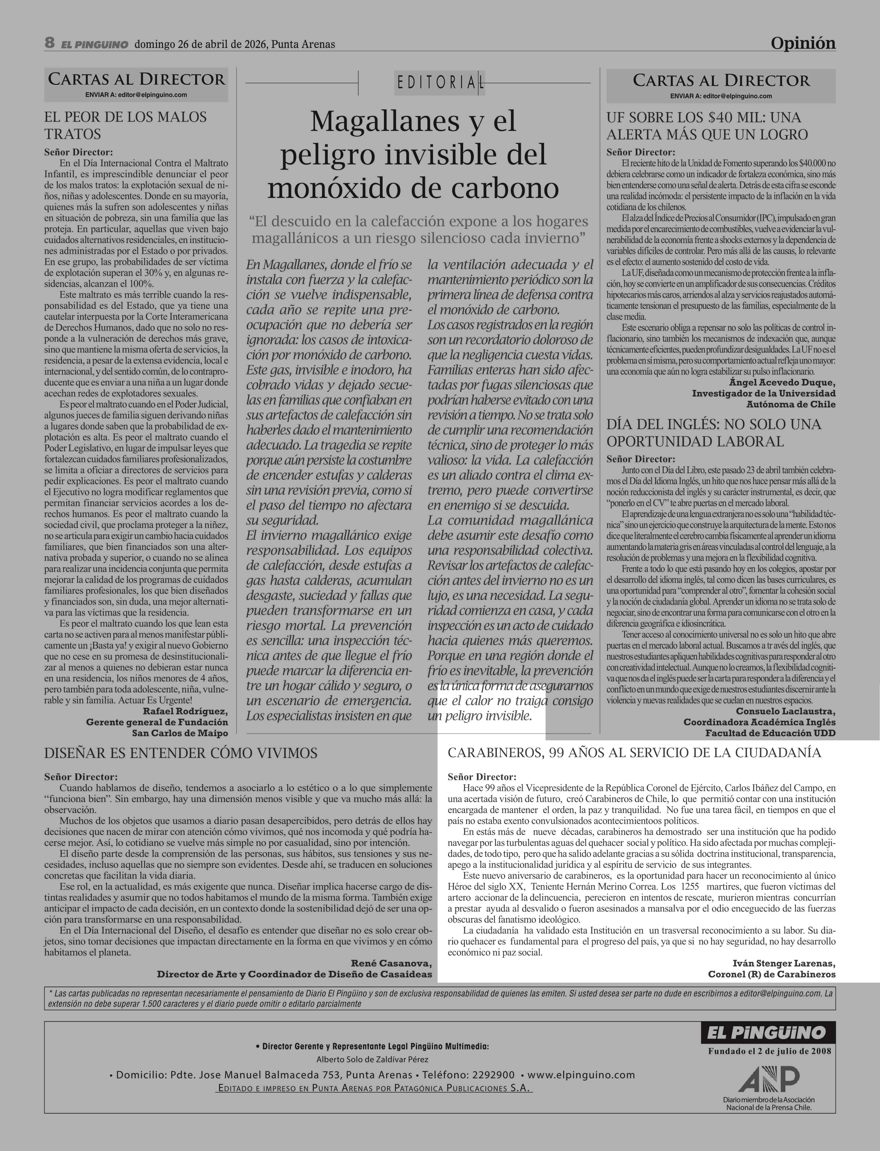 CARTAS: CARABINEROS, 99 AÑOS AL SERVICIO DE LA CIUDADANÍA 26-04-2026 El Pingüino |