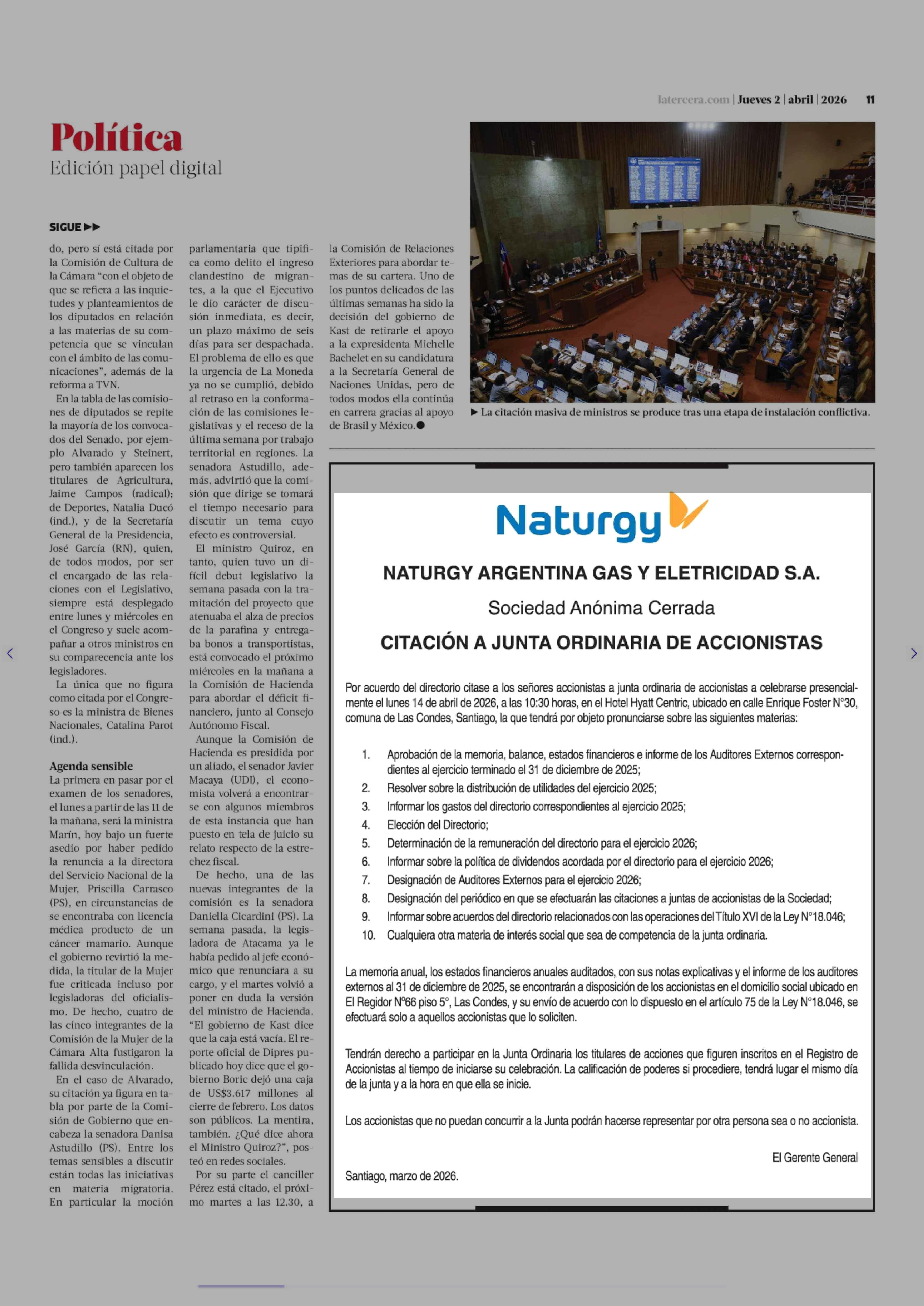 Extractos: NATURGY 02-04-2026 La Tercera |