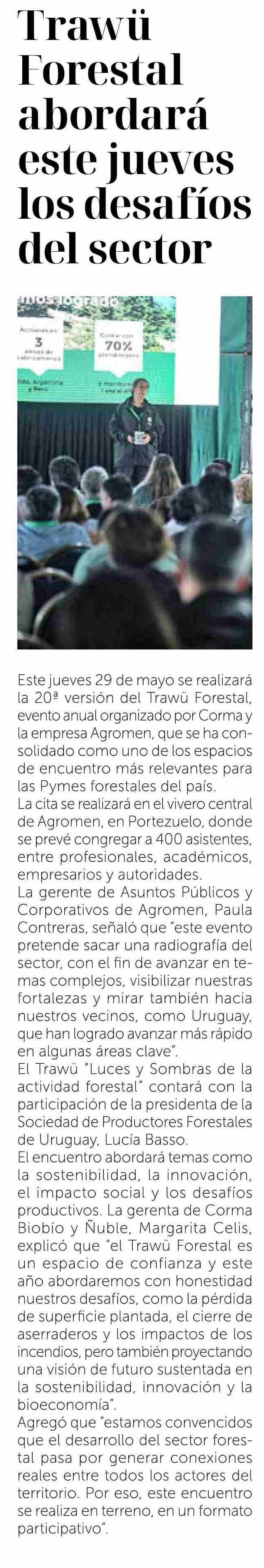 Trawü Forestal abordará este jueves los desafíos del sector 27-05-2025 La Discusión |