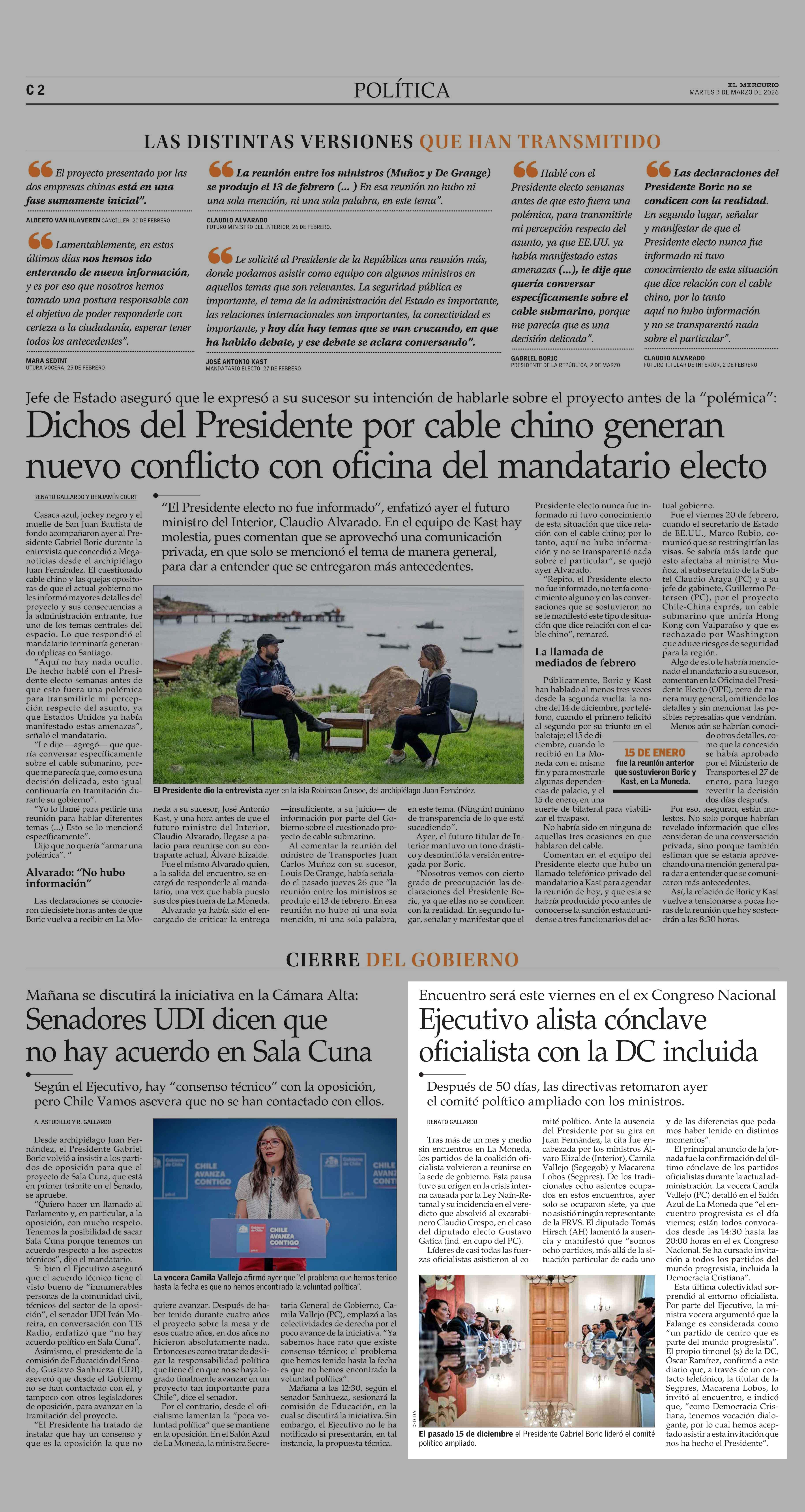 Ejecutivo alista cónclave oficialista con la DC incluida 03-03-2026 El Mercurio |