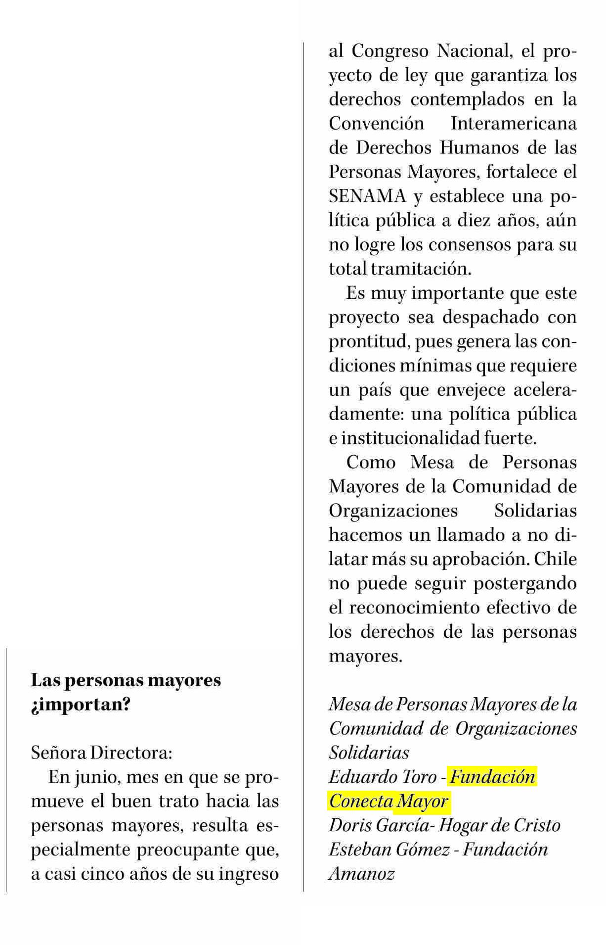 CARTAS: Las person mayores ¿importan? 20-06-2025 Diario Concepción |