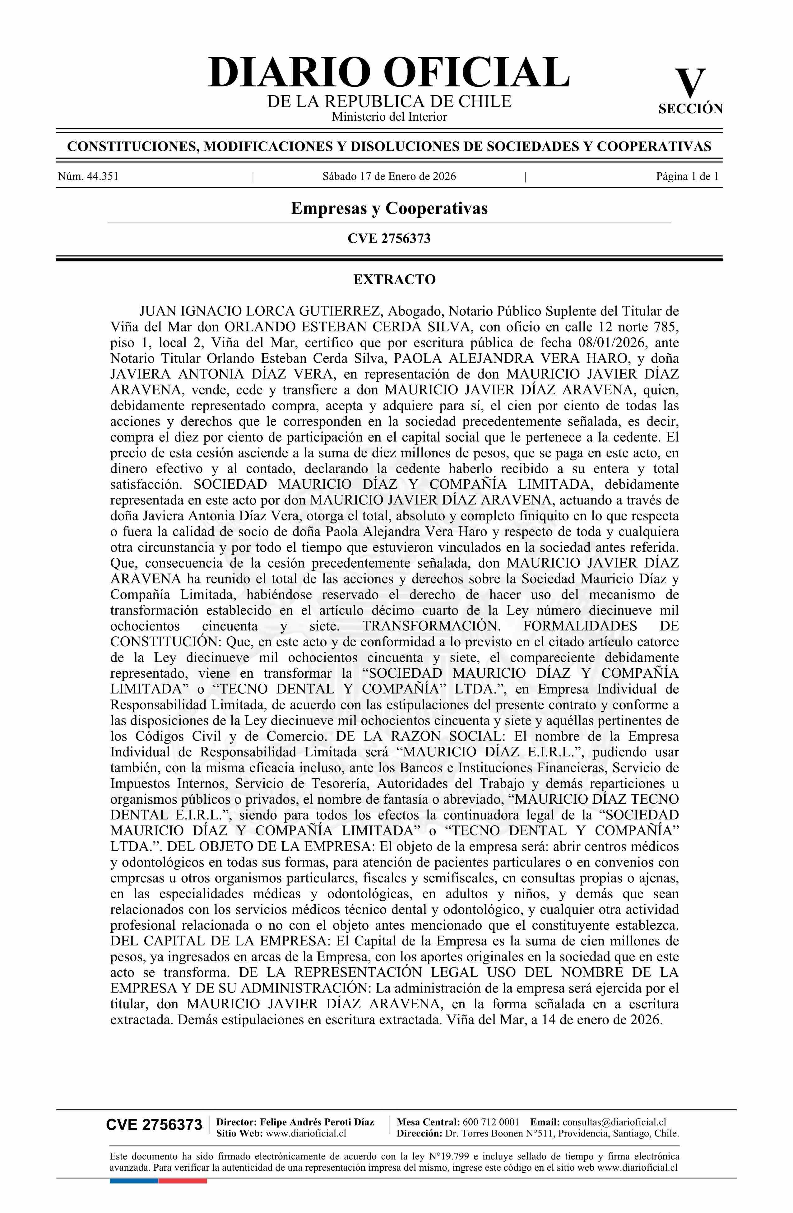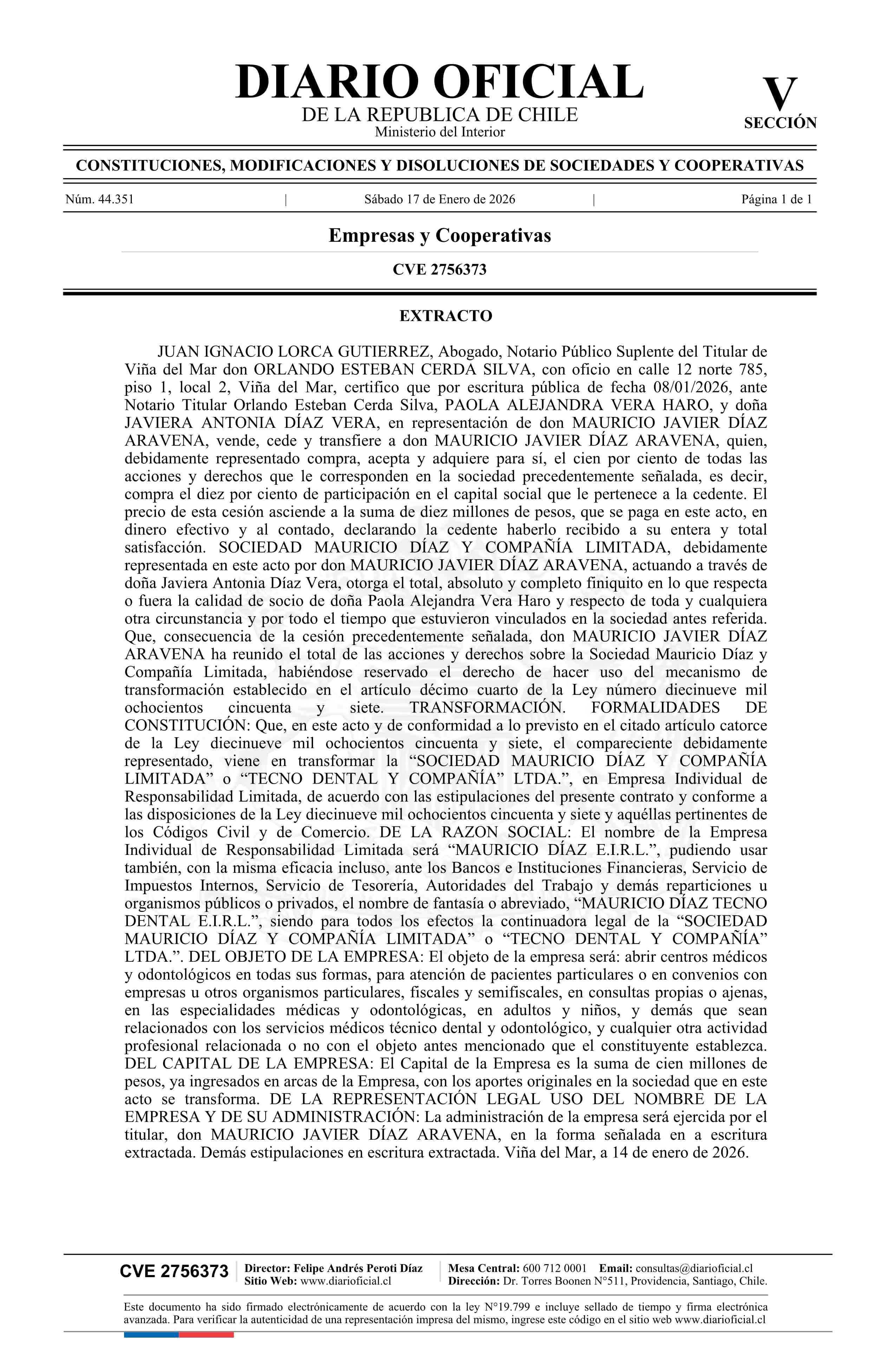 Título: SOCIEDAD MAURICIO DÍAZ Y COMPAÑÍA LIMITADA 77.288.640-3*
