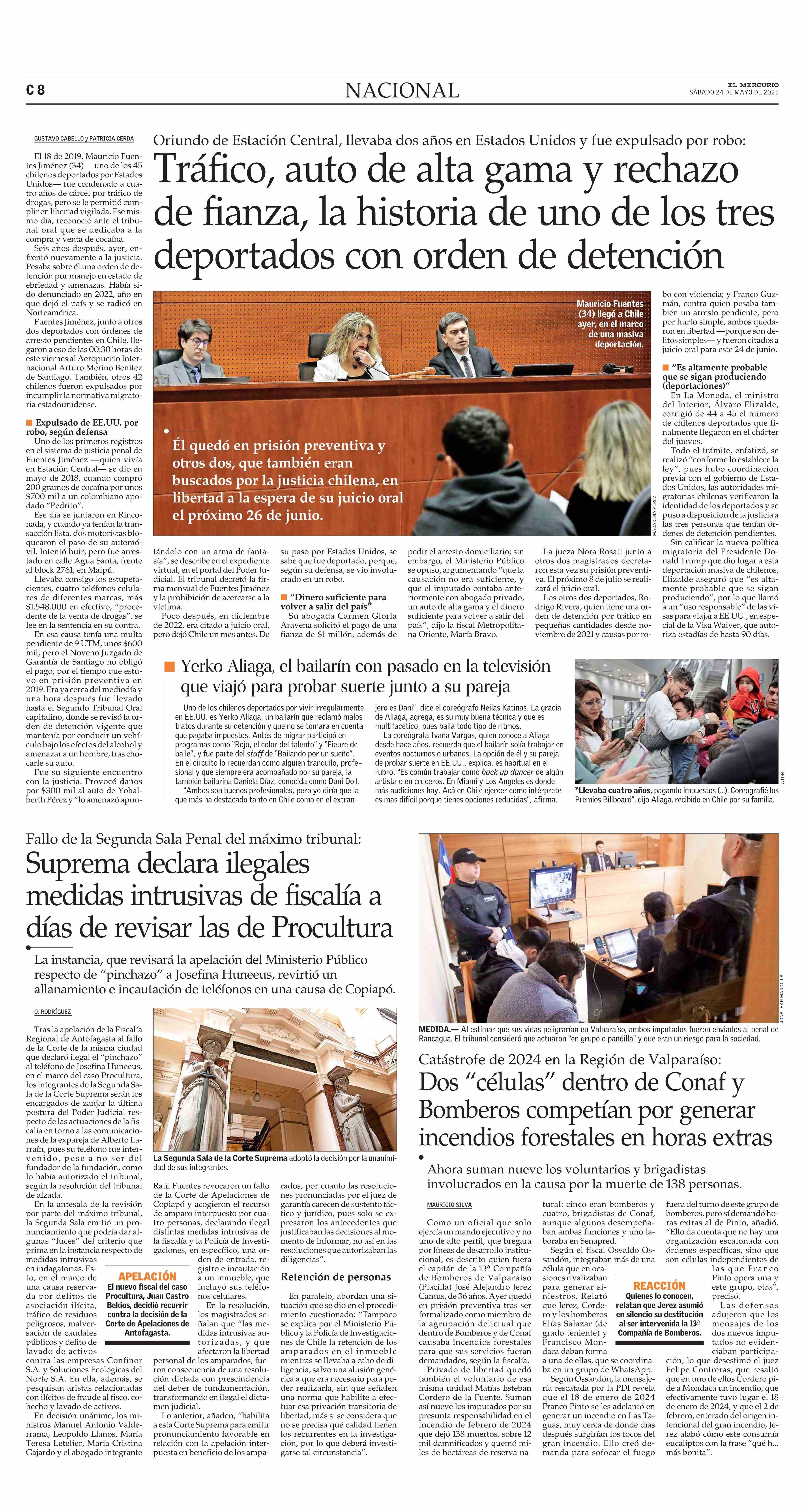 Suprema declara ilegales medidas intrusivas de fiscalía a días de revisar las de Procultura 24-05-2025 El Mercurio |