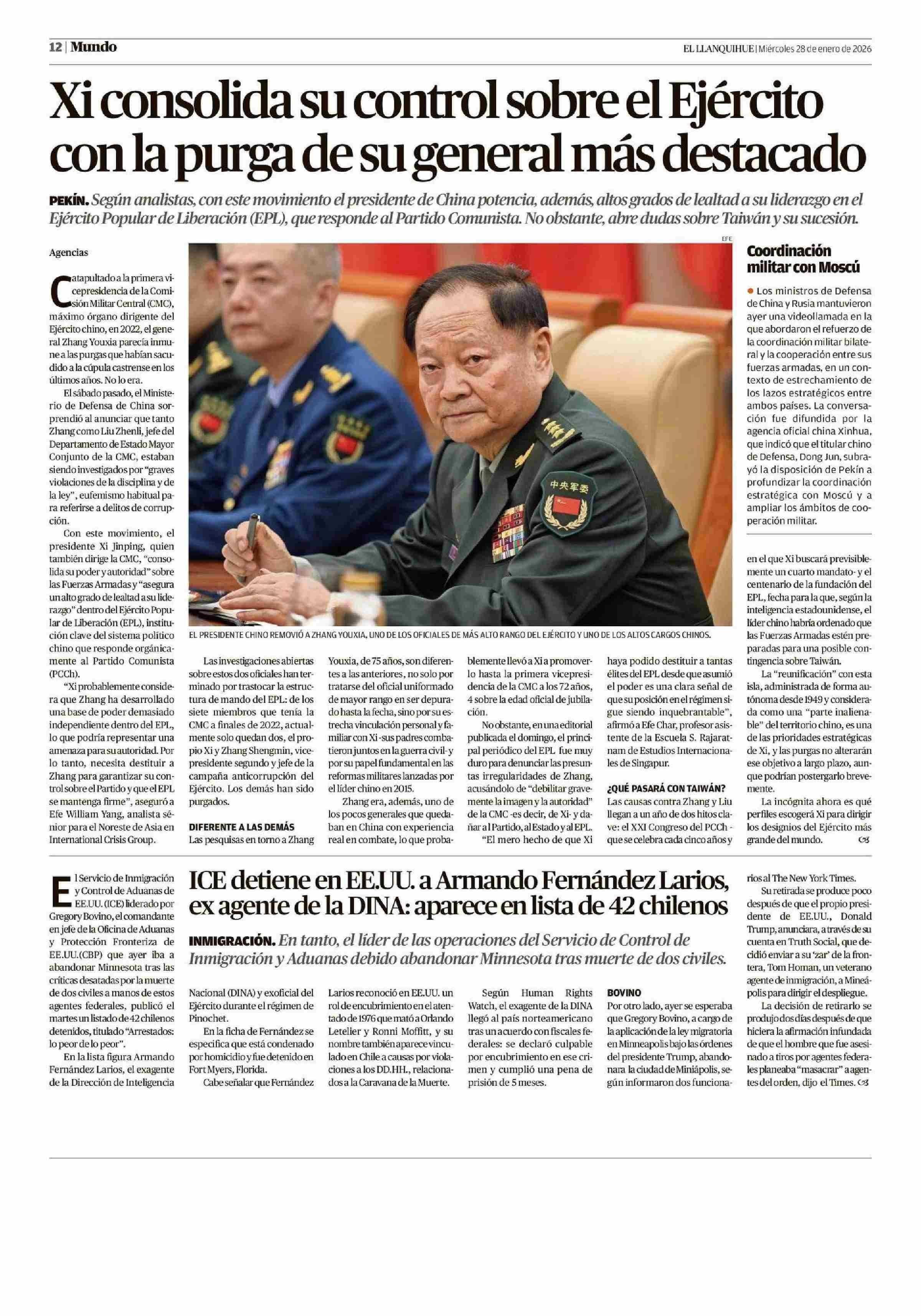 Título: Xi consolida su control sobre el Ejército con la purga de su general más destacado