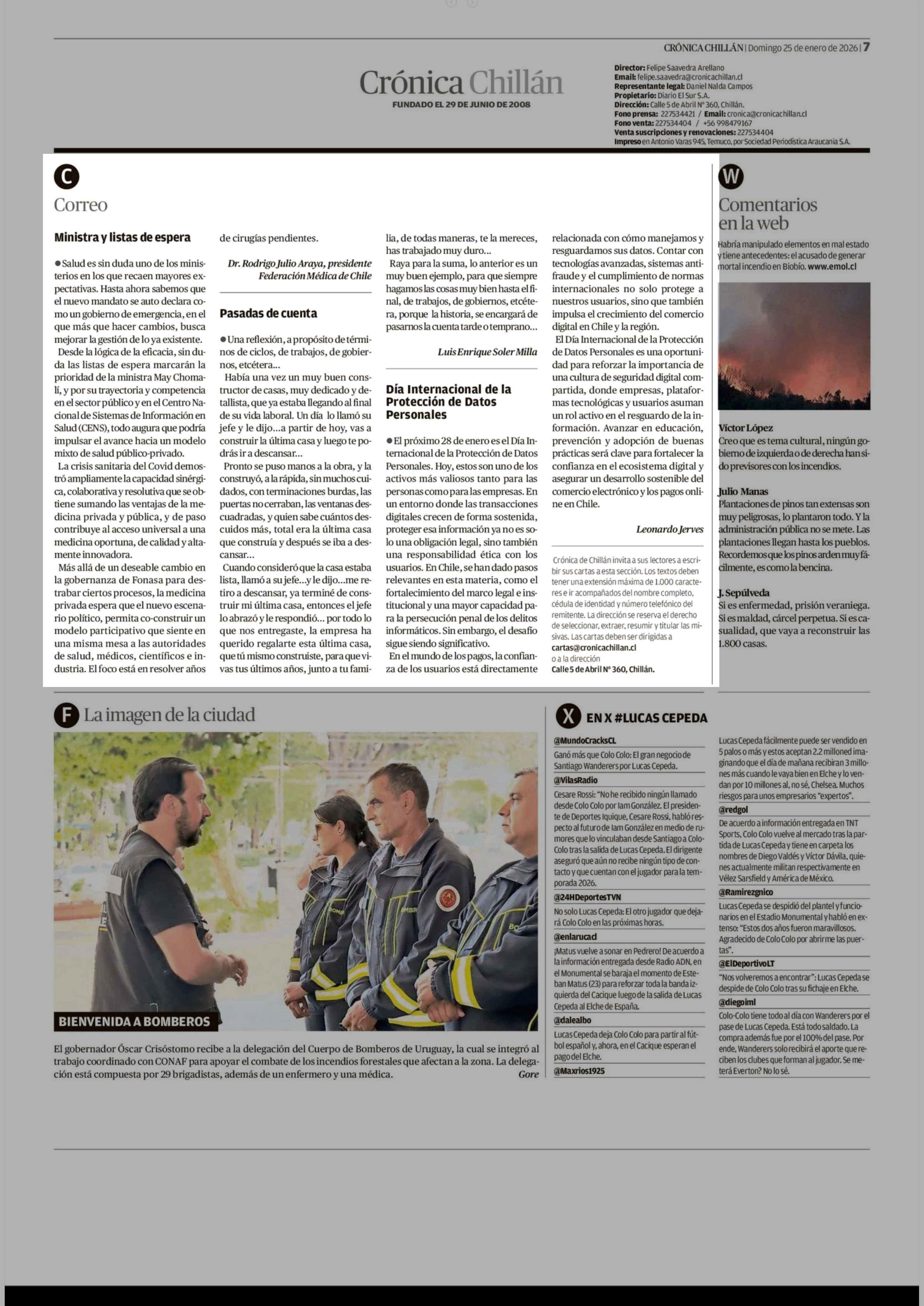 Cartas: Ministra y listas de espera 25-01-2026 Crónica de Chillán |
