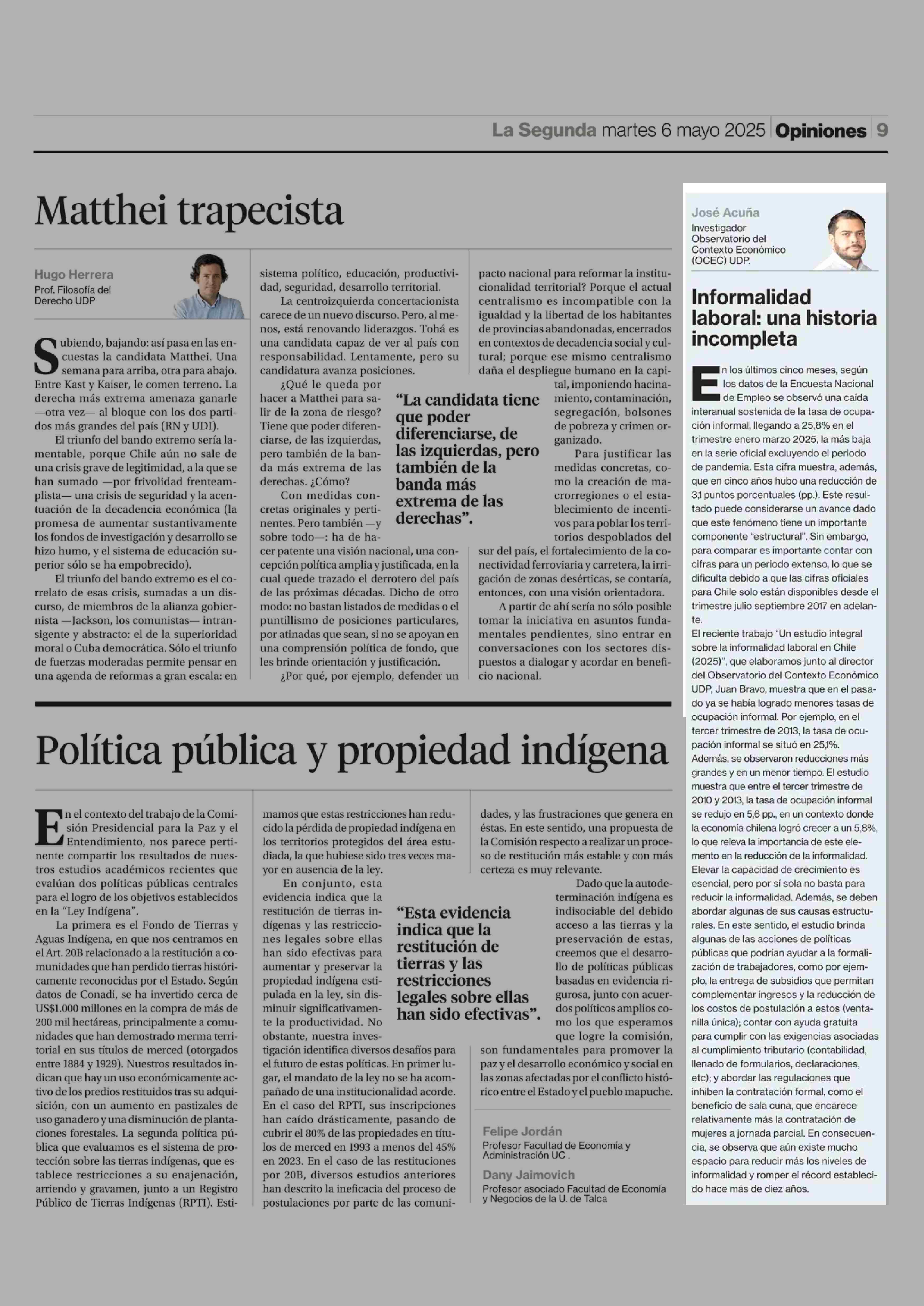 COLUMNAS DE OPINIÓN: Informalidad laboral: una historia incompleta 06-05-2025 La Segunda |