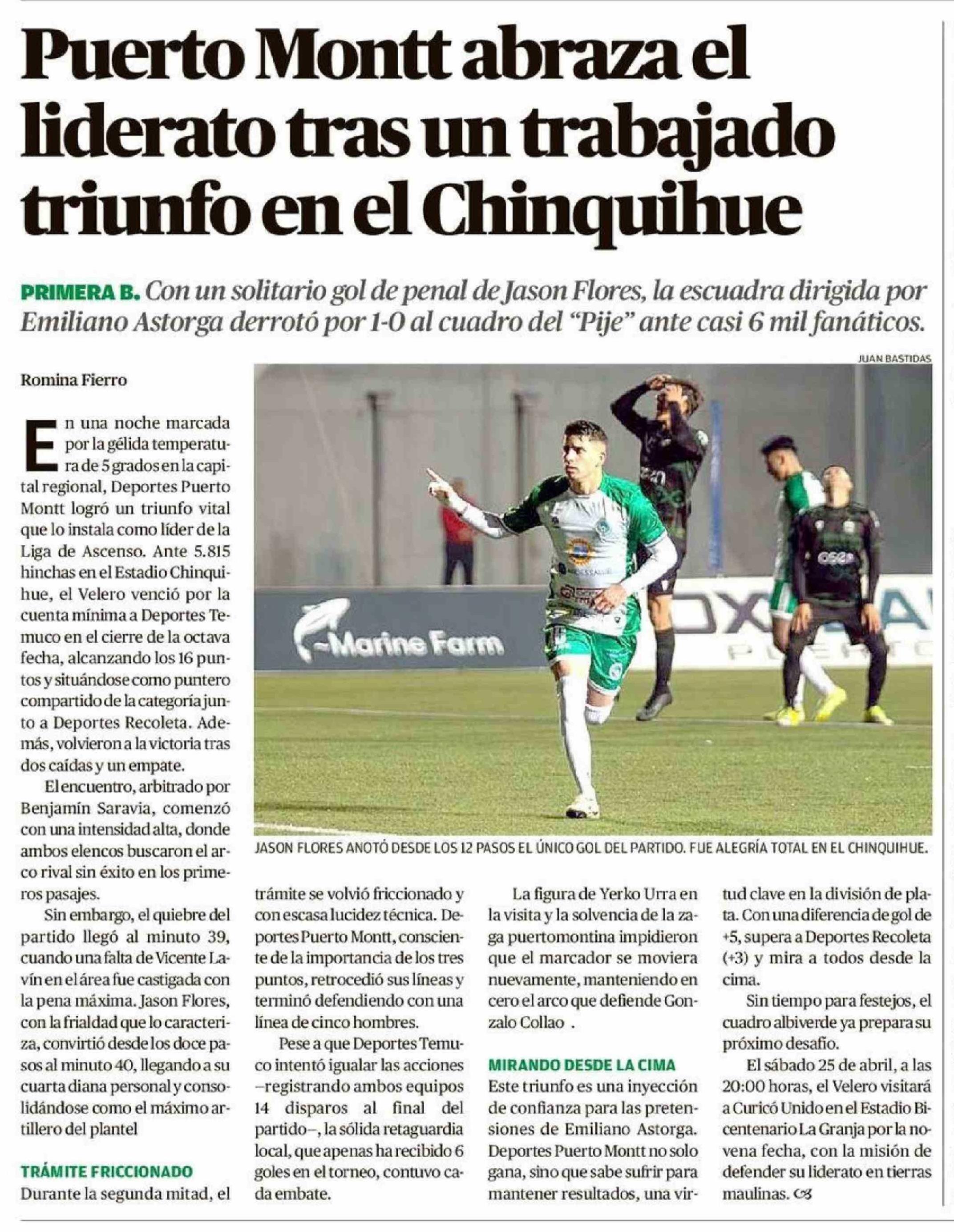 Título: Puerto Montt abraza el liderato tras un trabajado triunfo en el Chinquihue