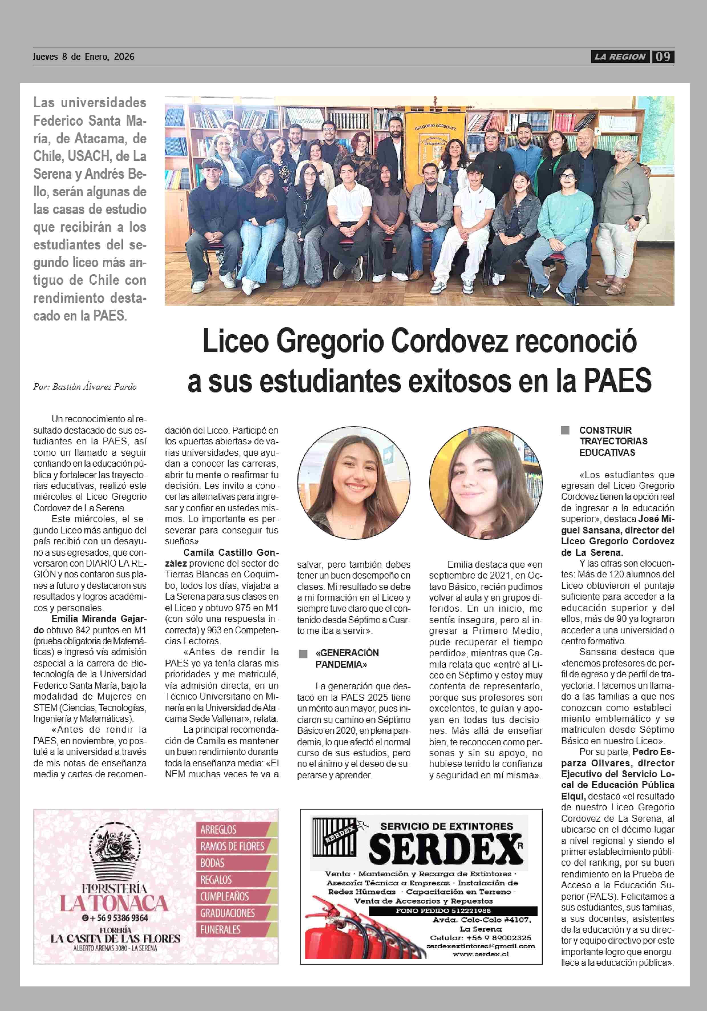 Liceo Gregorio Cordovez reconoció a sus estudiantes exitosos en la PAES 08-01-2026 Diario la Región |