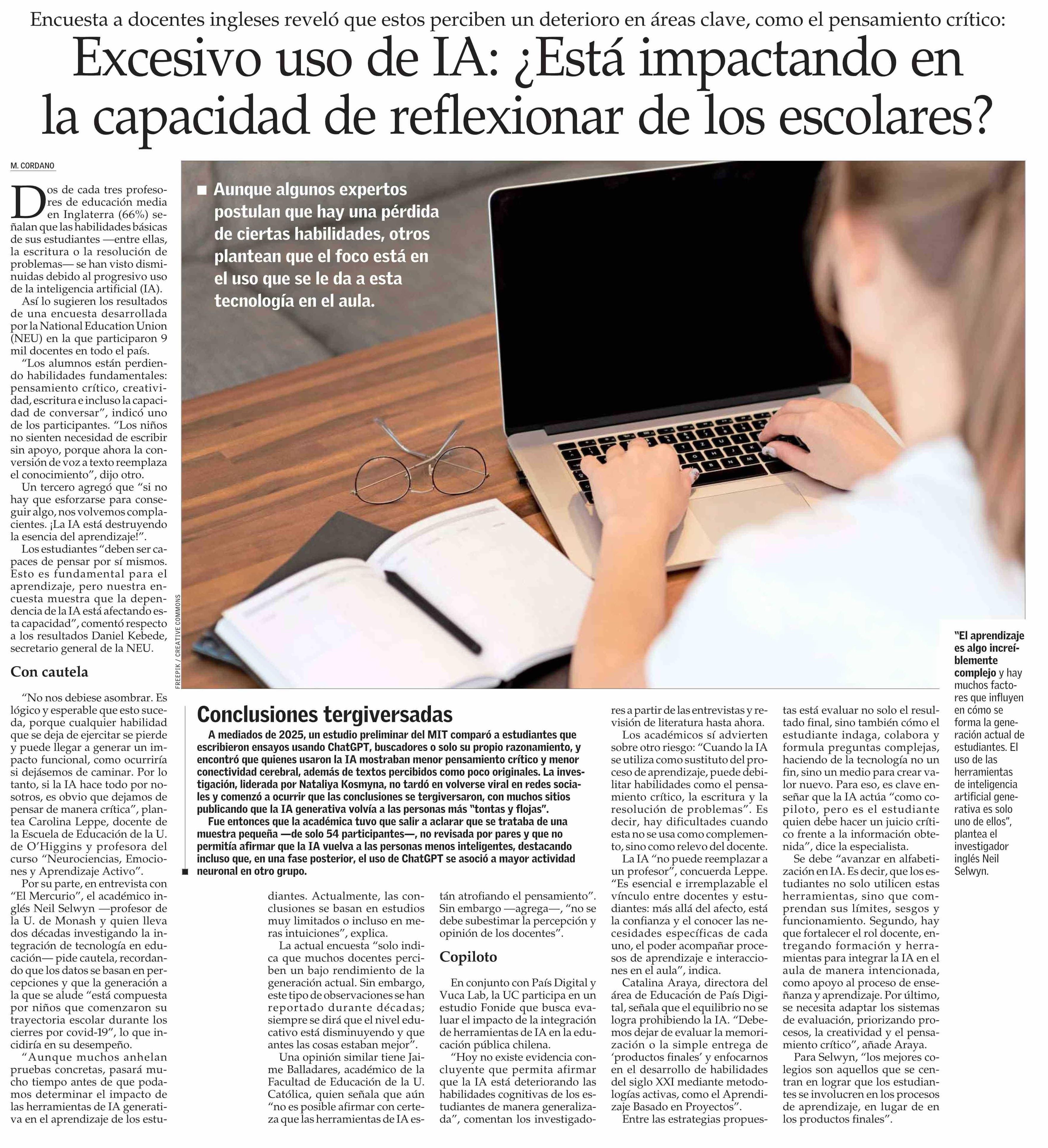 Título: Excesivo uso de IA: ¿Está impactando en la capacidad de reflexionar de los escolares?