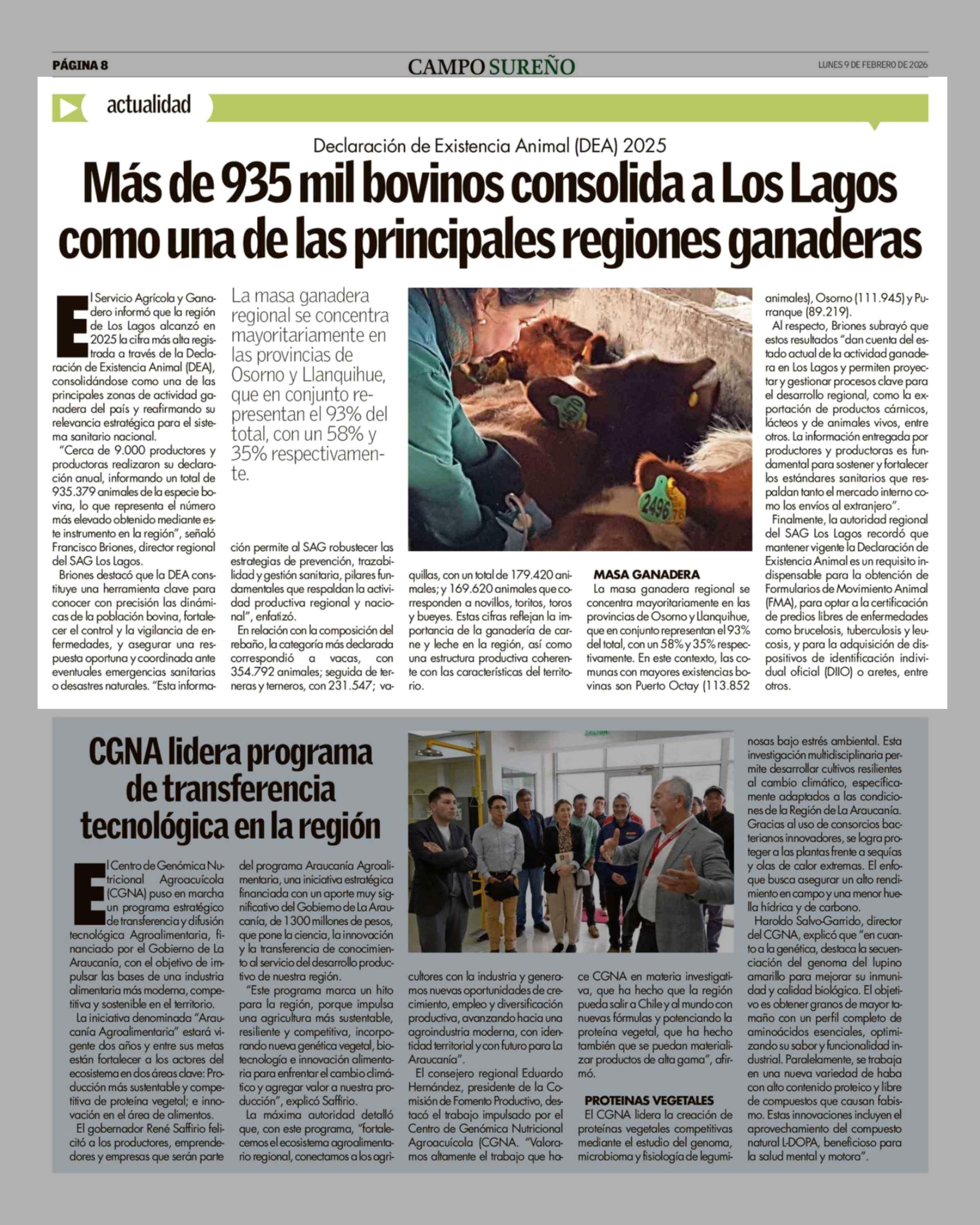 Más de 935 mil bovinos consolida a Los Lagos como una de las principales regiones ganaderas 09-02-2026 Campo Sureño - Regiones IX, X y XIV |