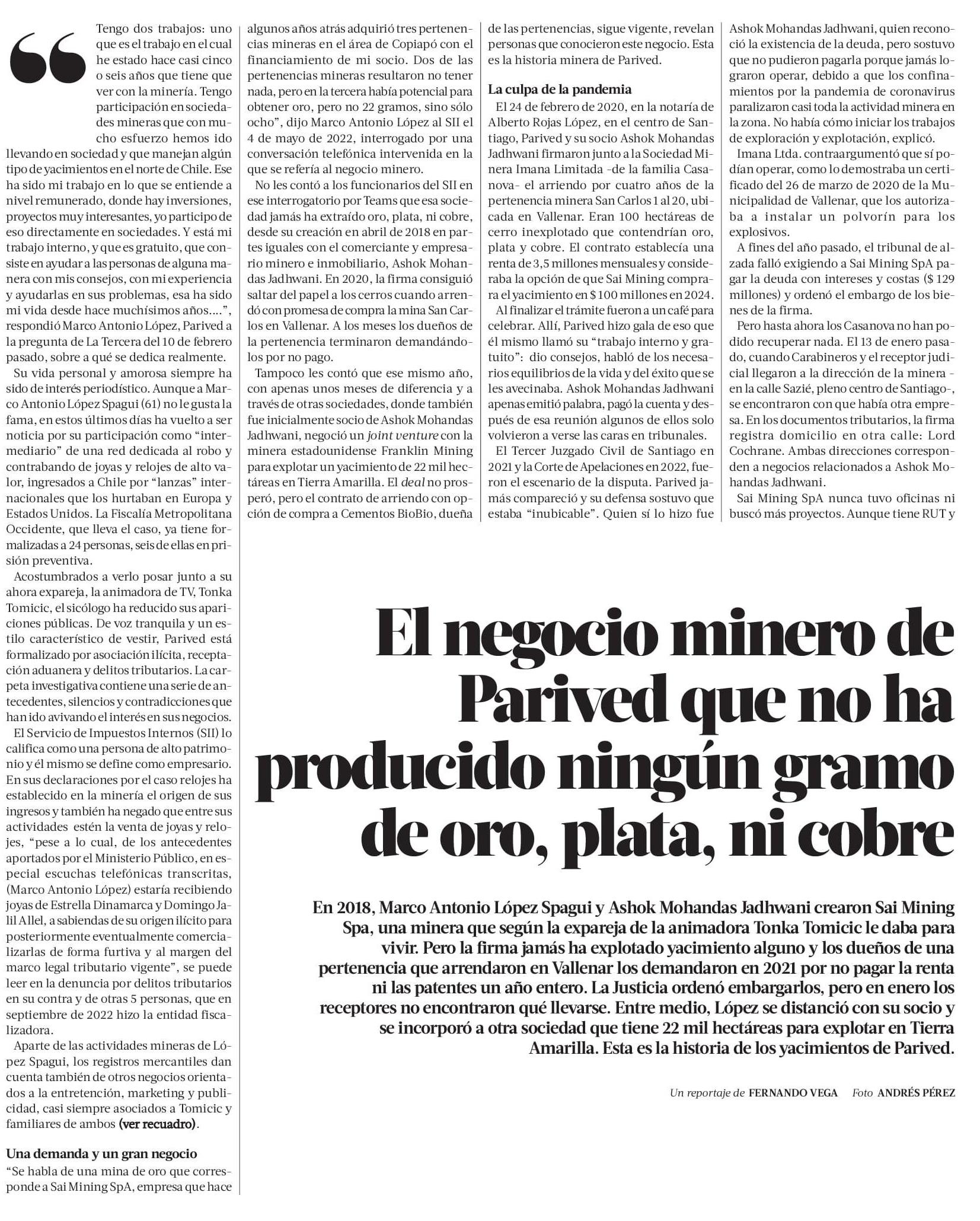 El negocio minero de Parived que no ha producido ningún gramo de oro, plata, ni cobre 05-03-2023 La Tercera |