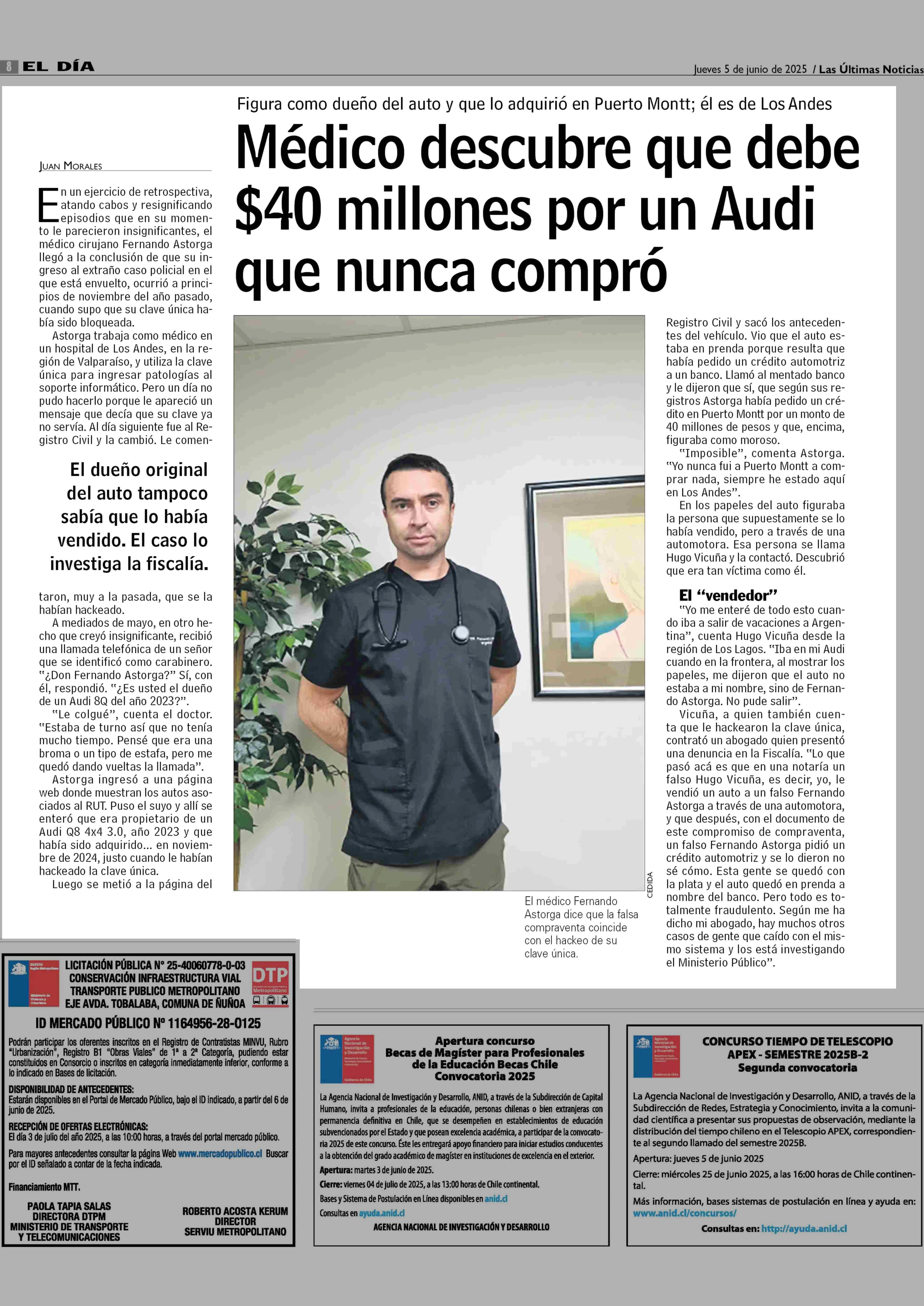 Médico descubre que debe $40 millones por un Audi que nunca compró 05-06-2025 Las Últimas Noticias |