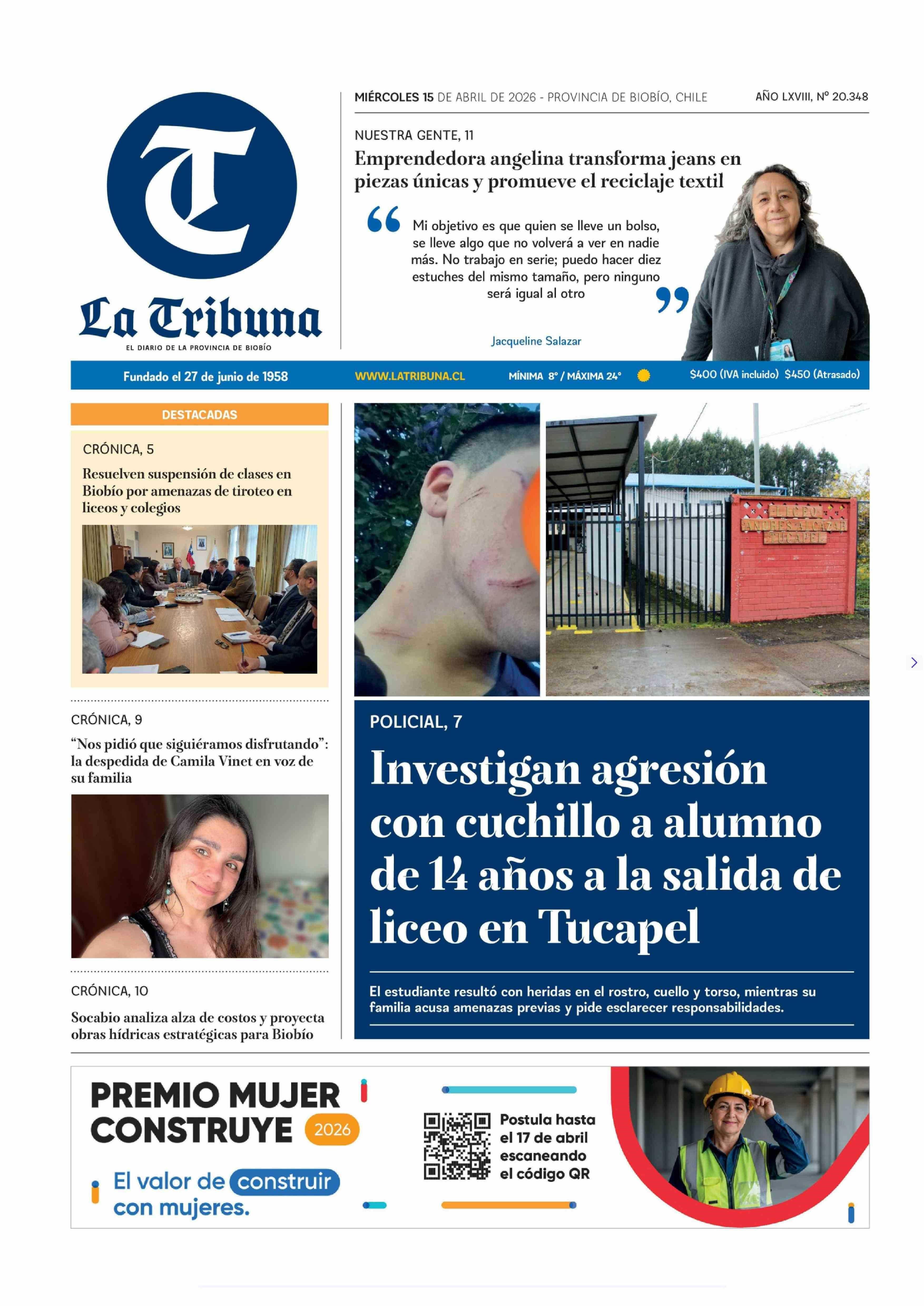 Fecha: 15-04-2026 Sector: Portada Región: Región del Bío-Bío