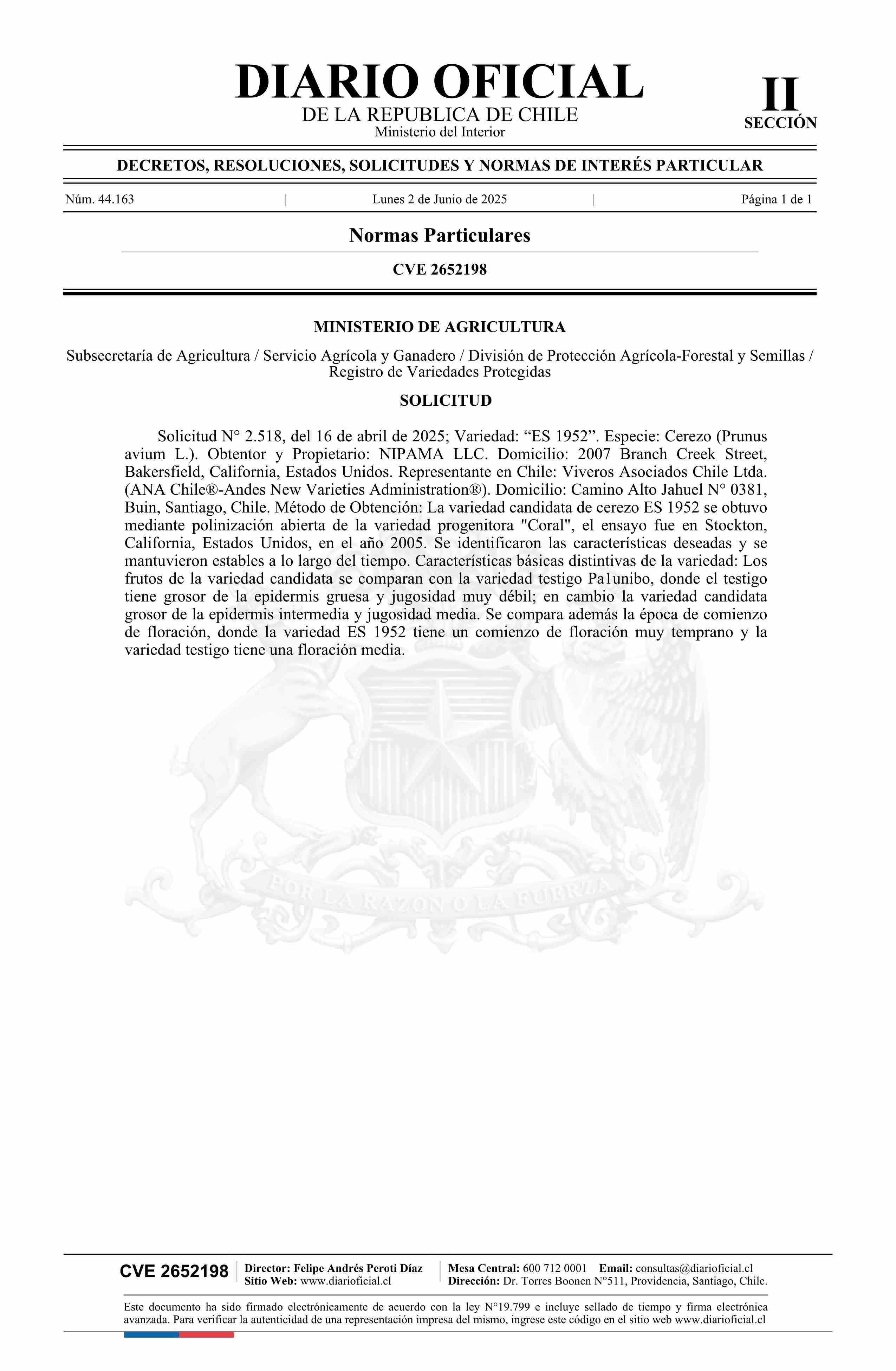 Solicitud número 2.518.- Nipama LLC. 02-06-2025 Diario Oficial Edición Electrónica |