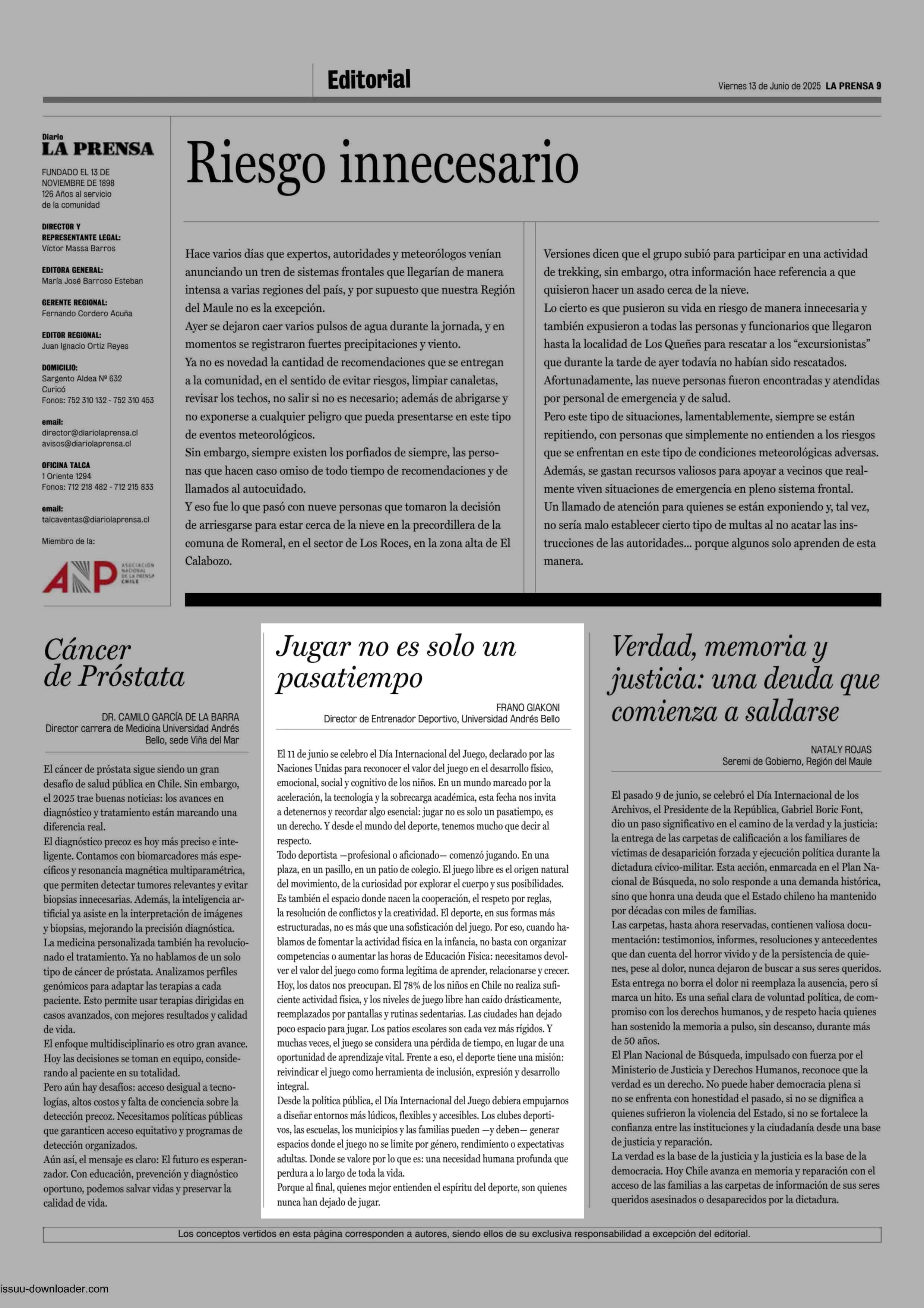 CARTAS: Jugar no es solo un pasatiempo 13-06-2025 La Prensa de Curicó |