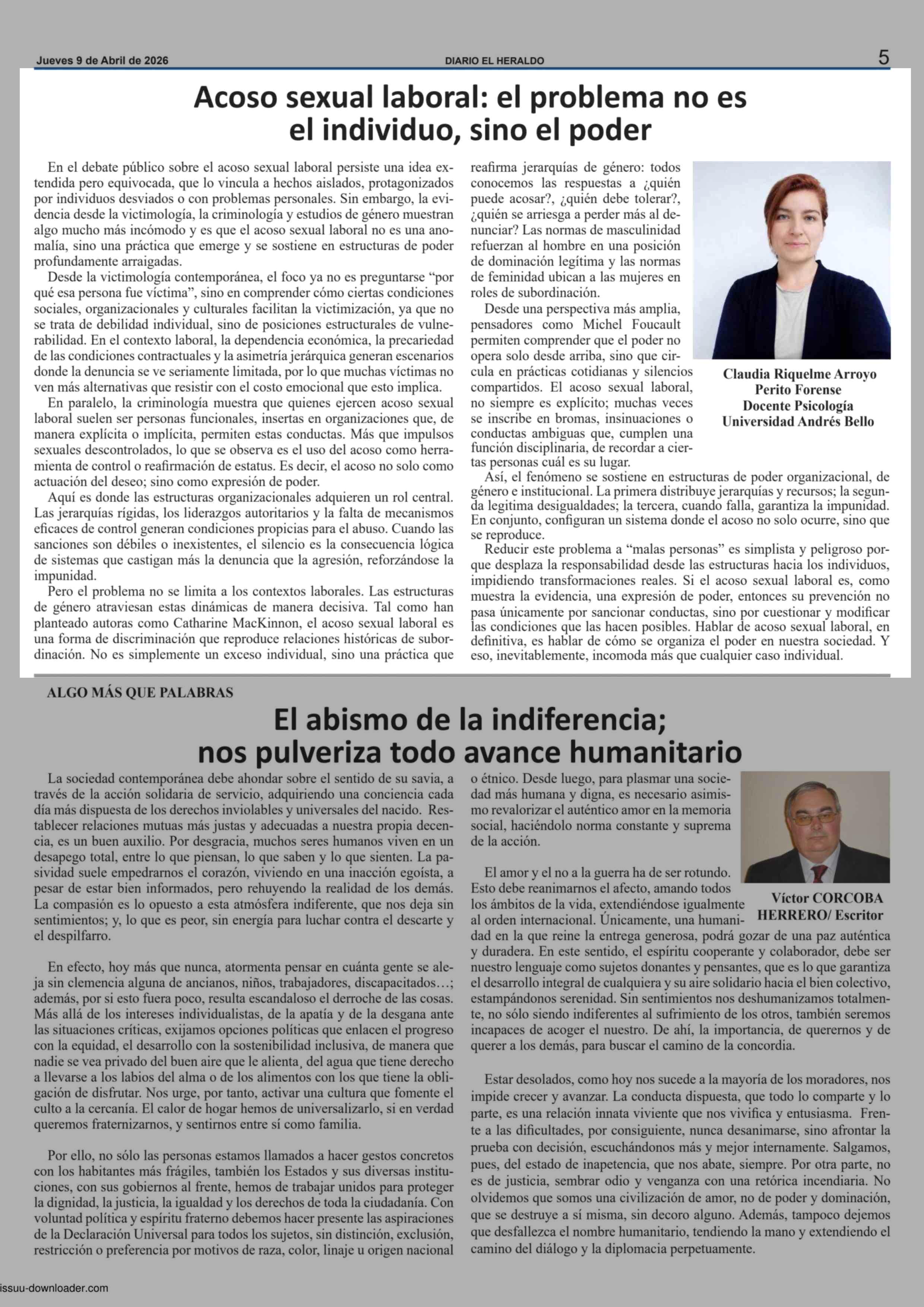 Título: Columnas de Opinión: Acoso sexual laboral: el problema no es el individuo, sino el poder