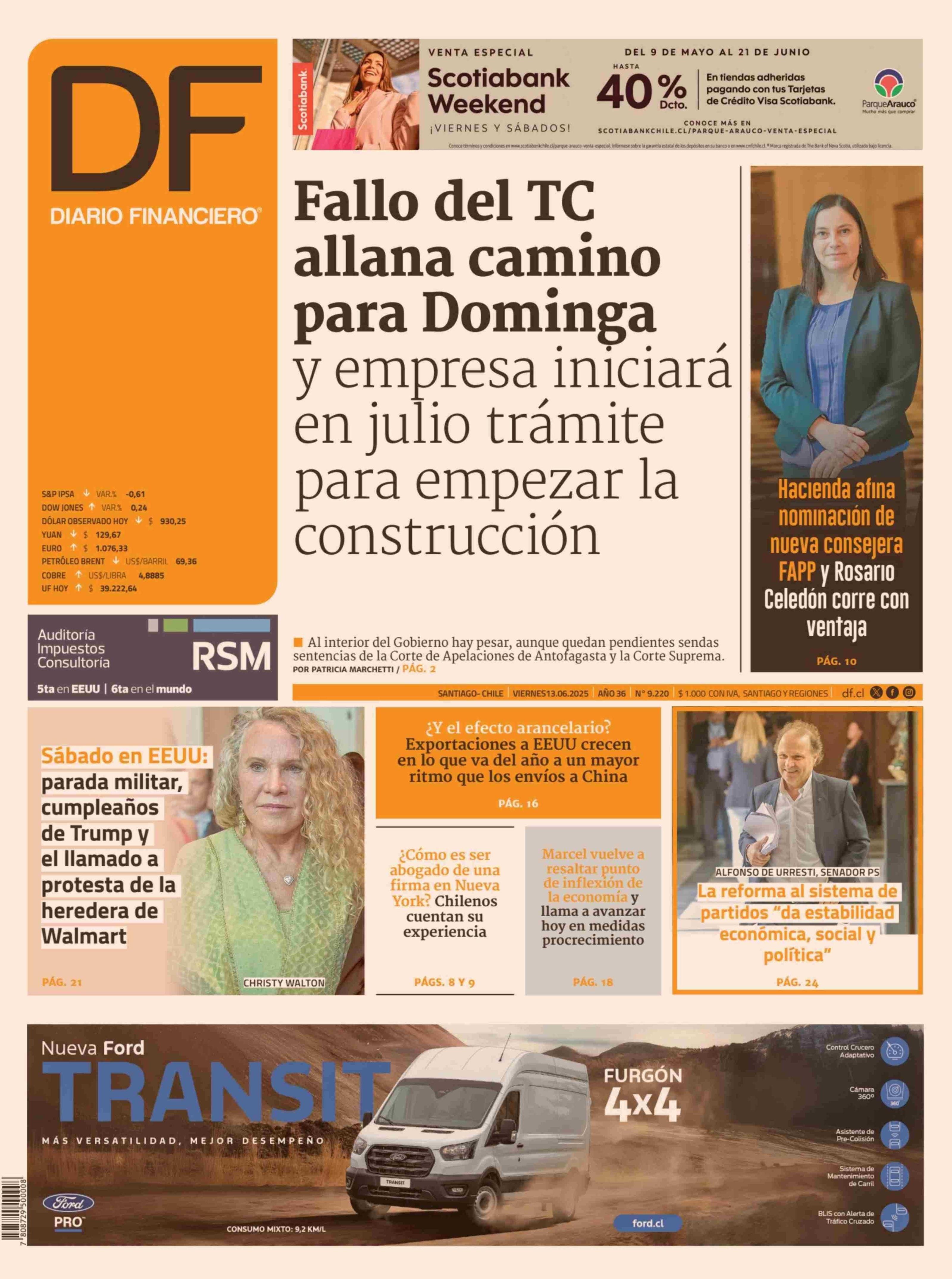 PORTADA DIARIO FINANCIERO - CHILE 13-06-2025 Diario Financiero |