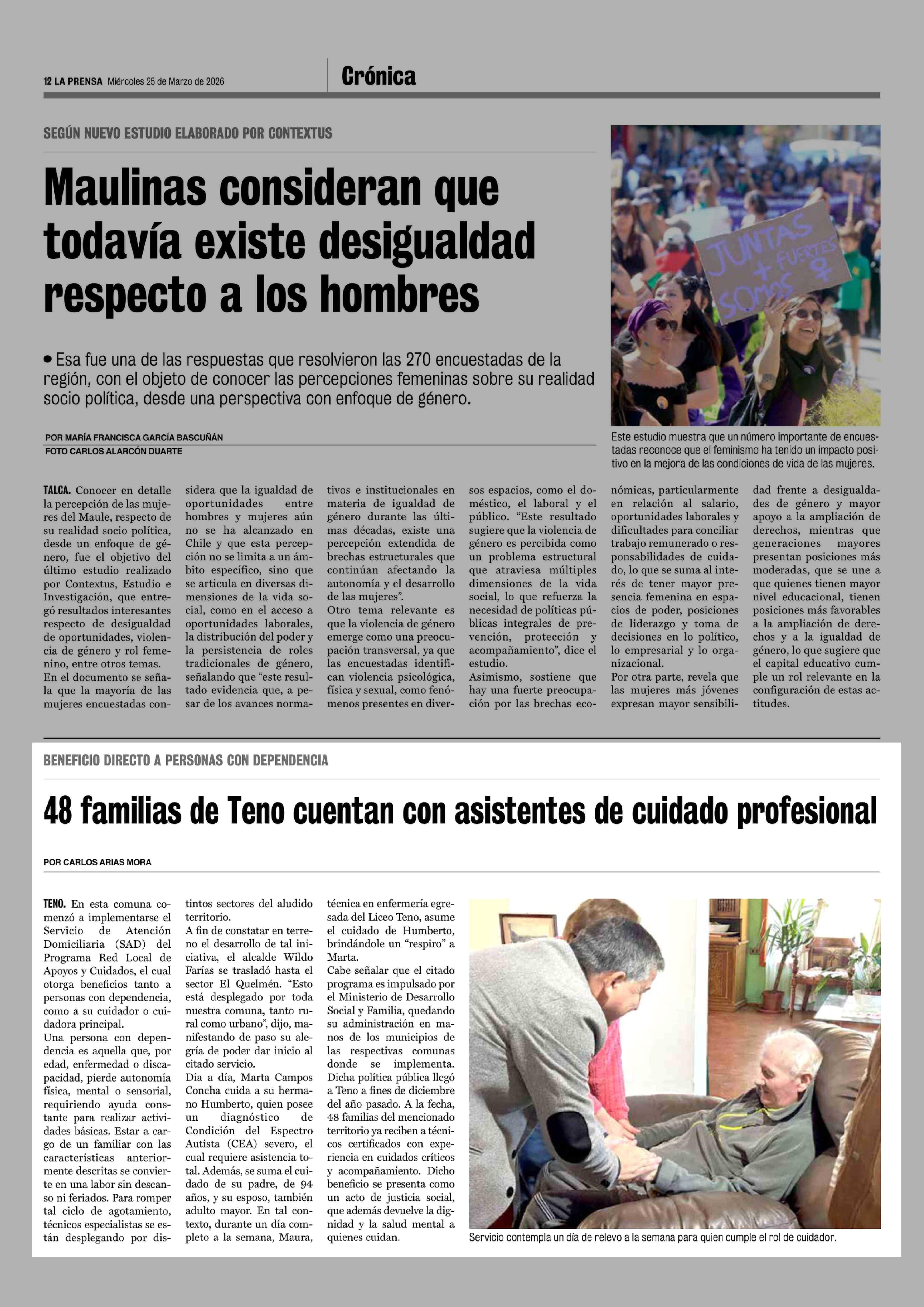 48 Familias de Teno cuentan con asistentes de cuidado profesional 25-03-2026 La Prensa de Curicó |