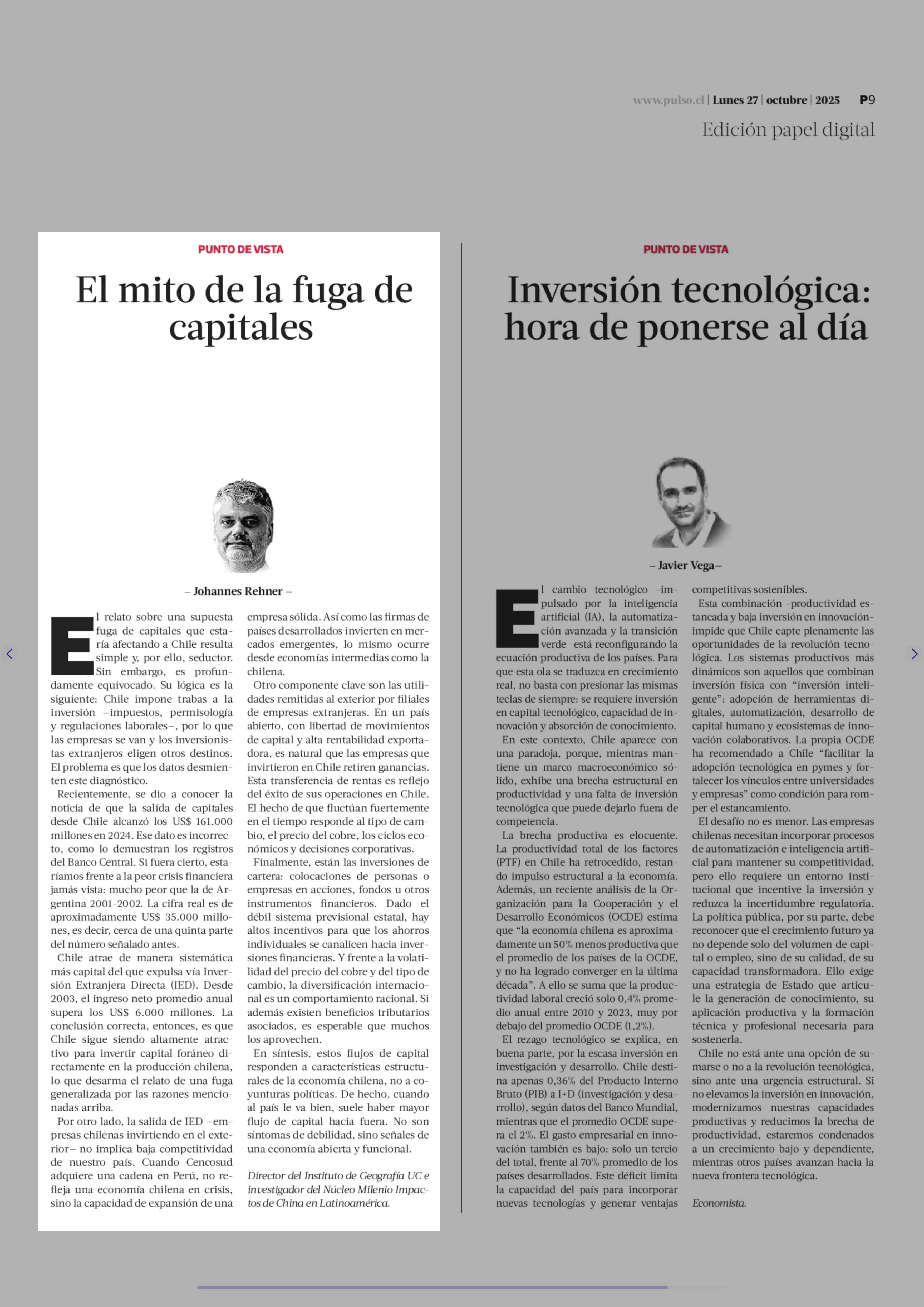 Columnas de Opinión: El mito de la fuga de capitales 27-10-2025 La Tercera |
