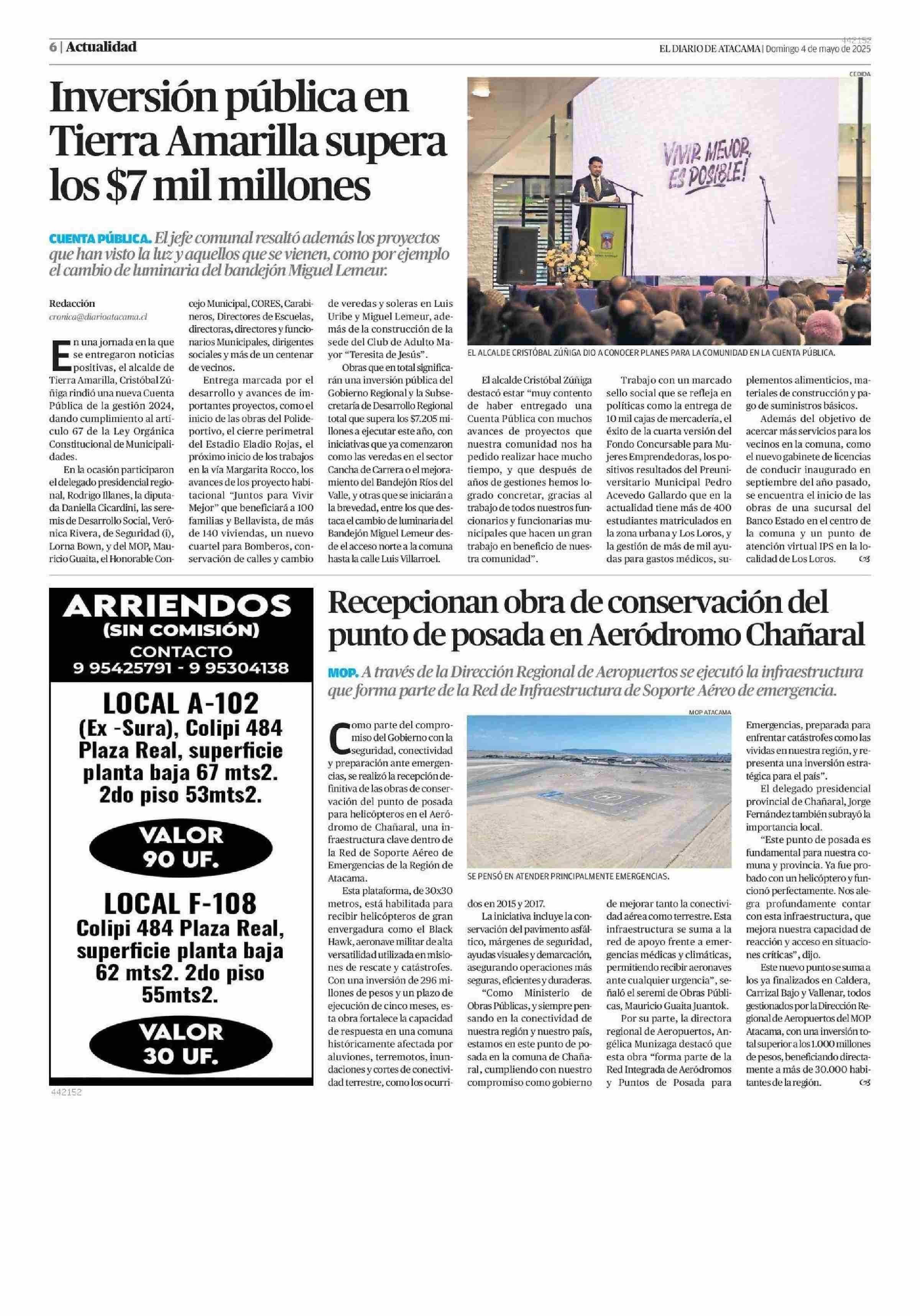 | Fecha: | 04-05-2025 | Sector: | Noticia general | Región: | Región de Atacama |