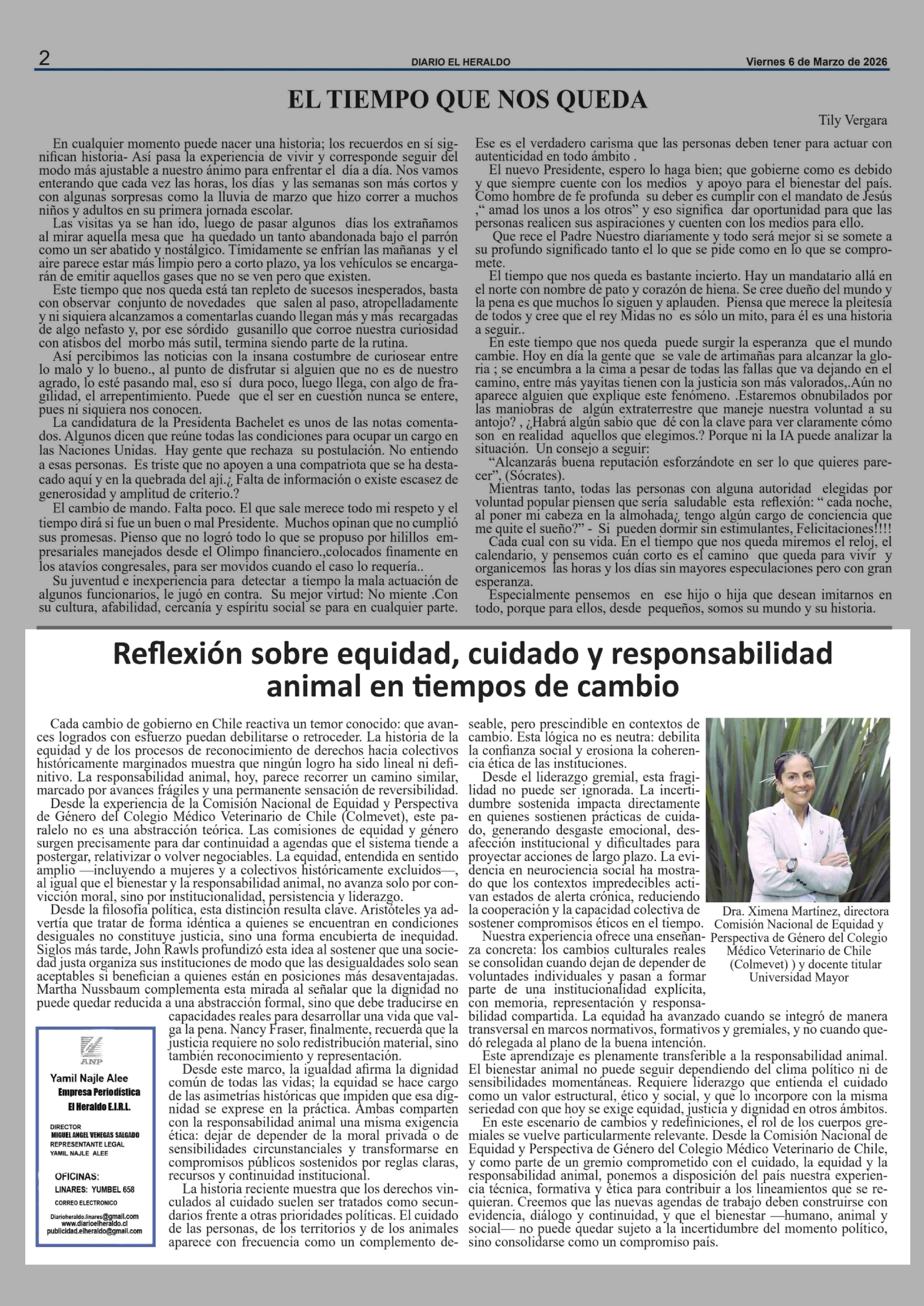 Columnas de Opinión: Reflexión sobre equidad, cuidado y responsabilidad animal en tiempos de cambio 06-03-2026 El Heraldo |