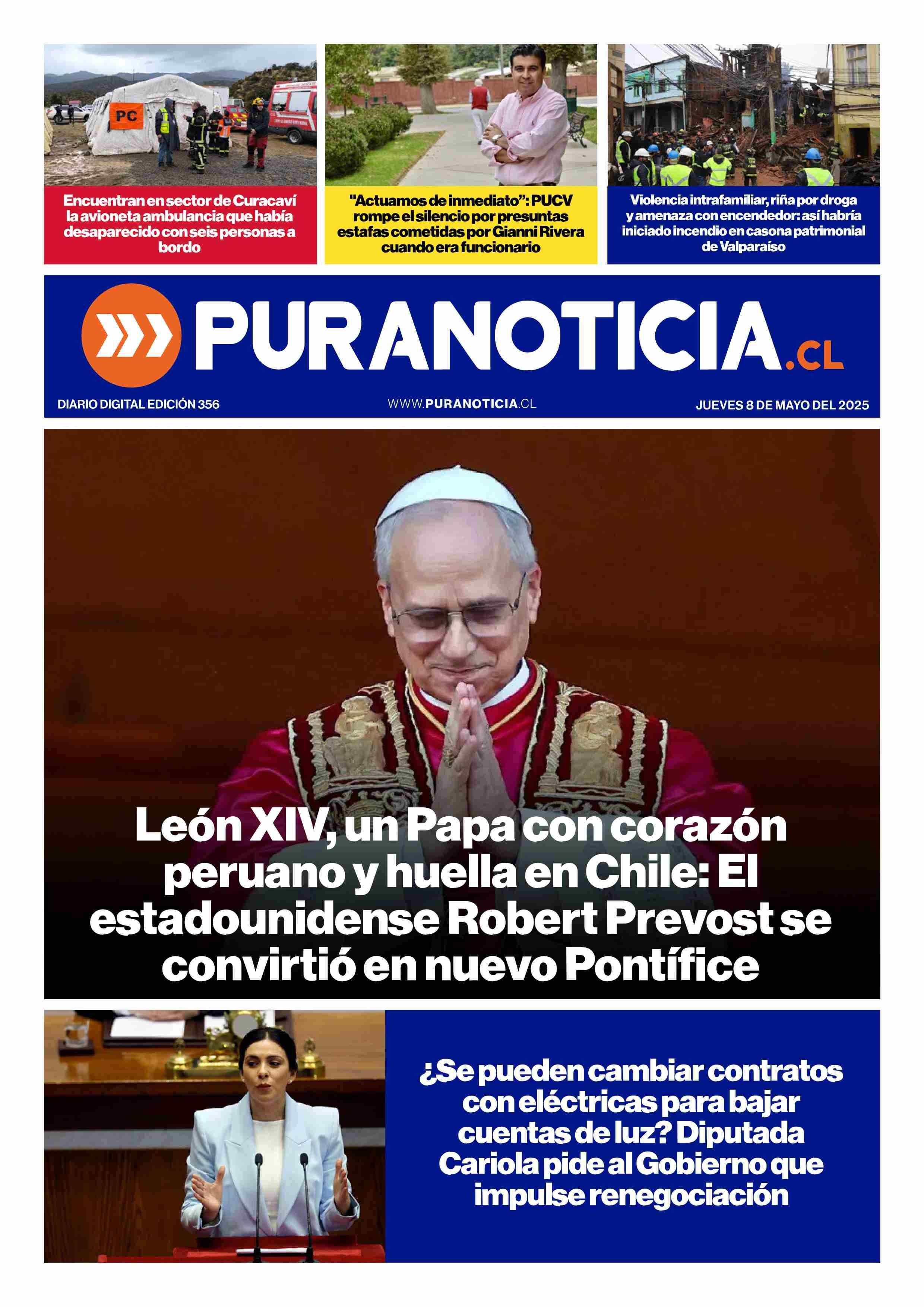PORTADA PURANOTICIA - CHILE 08-05-2025 Puranoticia.cl |