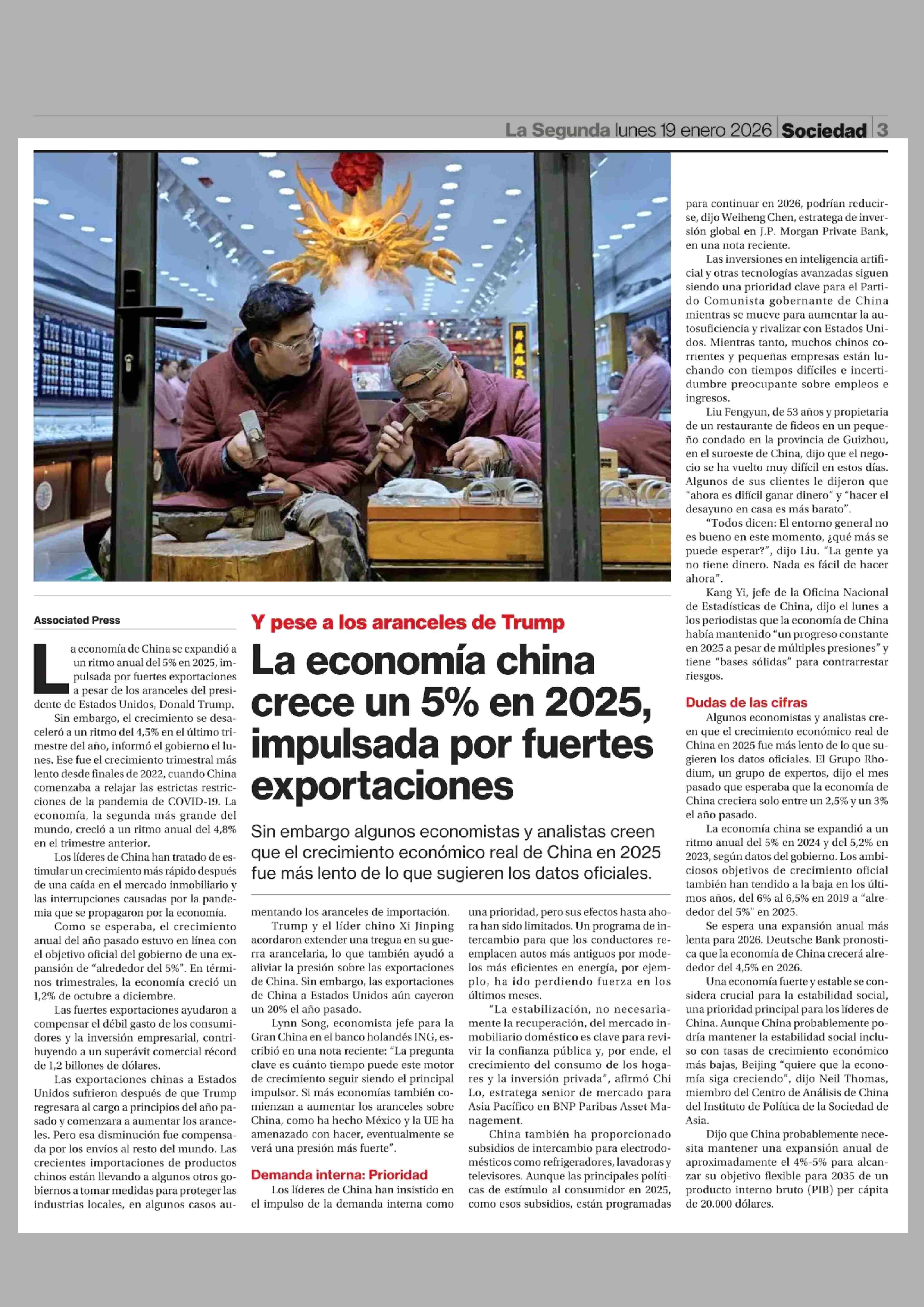 Título: La economía china crece un 5% en 2025, impulsada por fuertes exportaciones