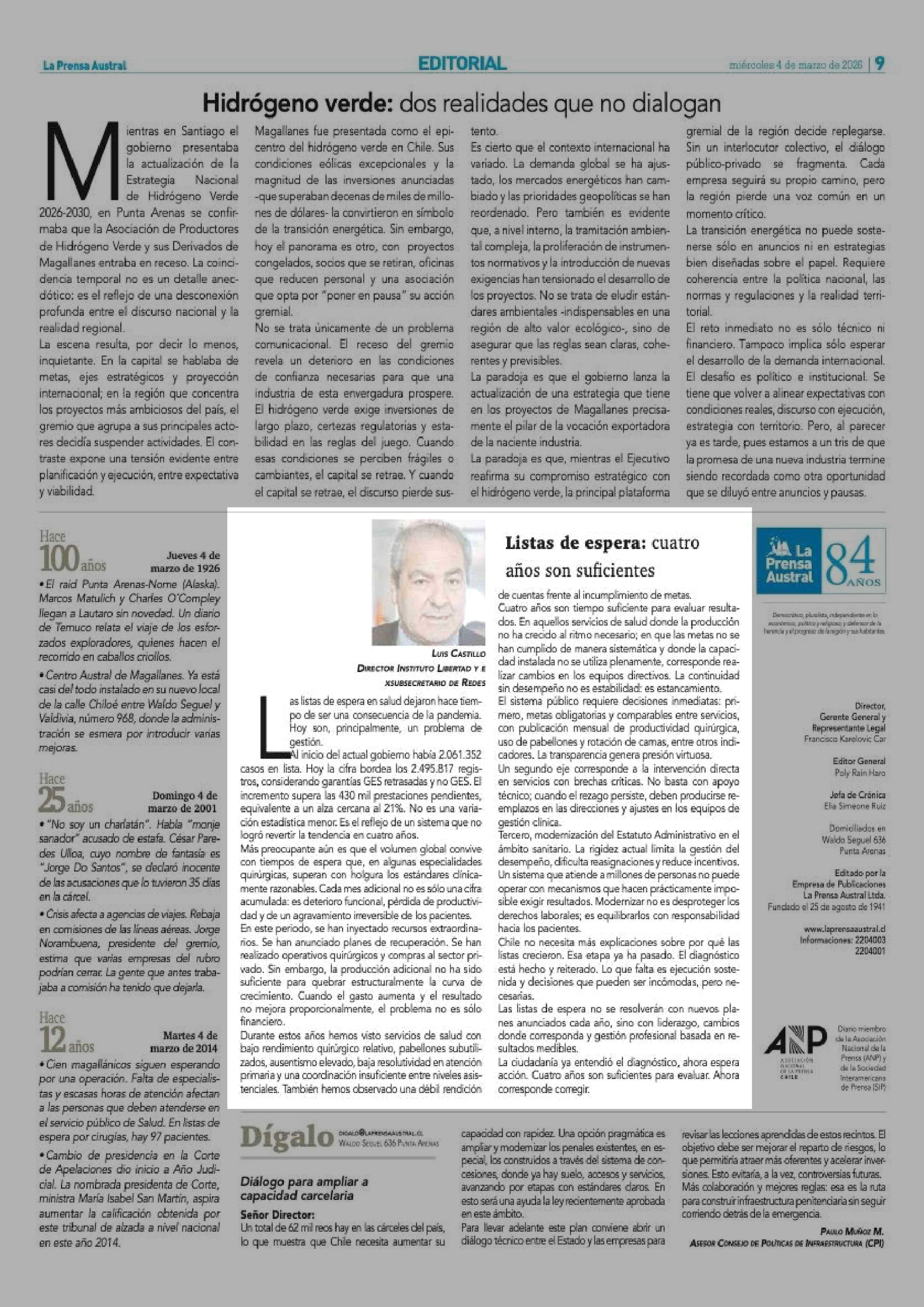 Fecha: 04-03-2026 Sector: Columnas de Opinión Región: Región de Magallanes y de la Antártica Chilena