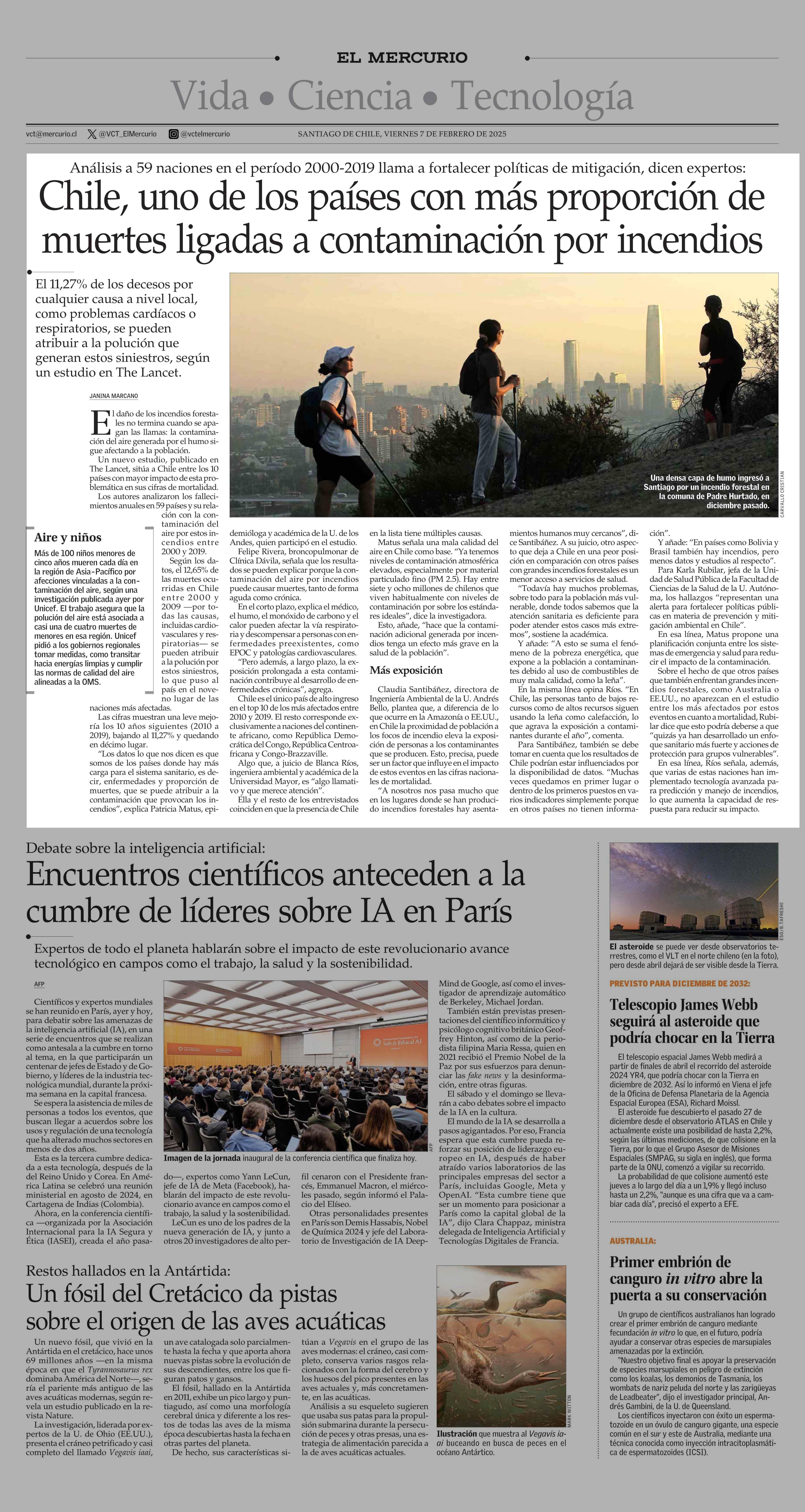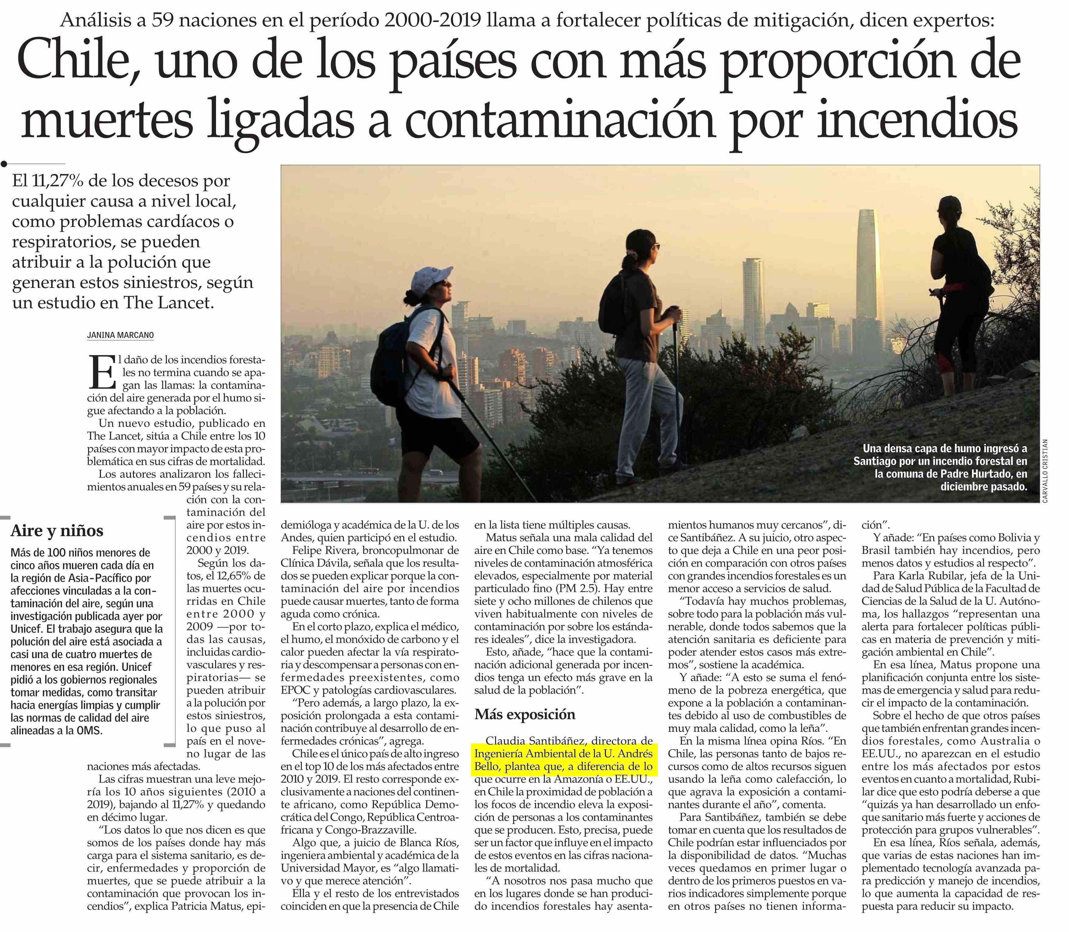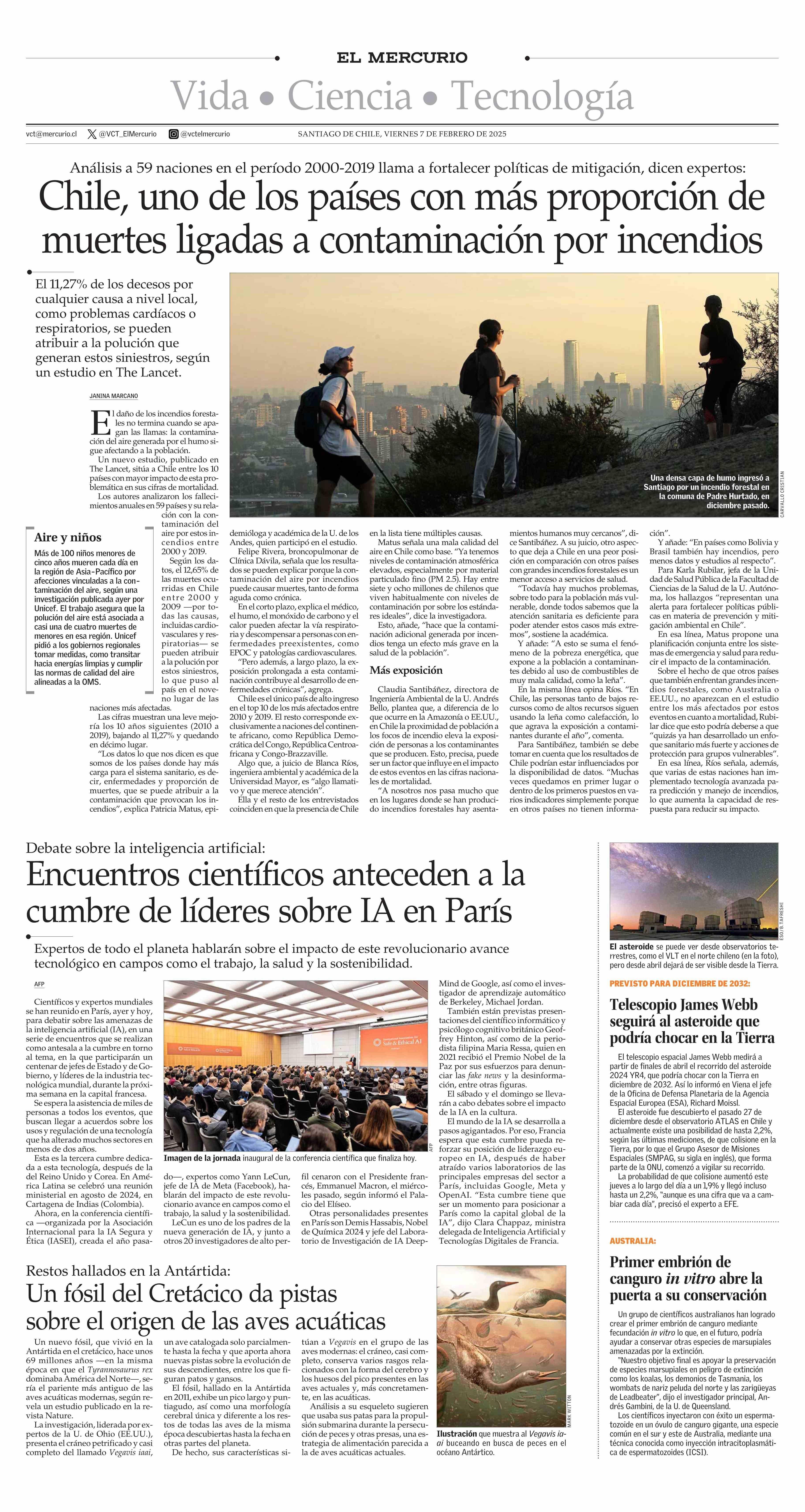 Chile, uno de los países con más proporción de muertes ligadas a contaminación por incendios 07-02-2025 El Mercurio |