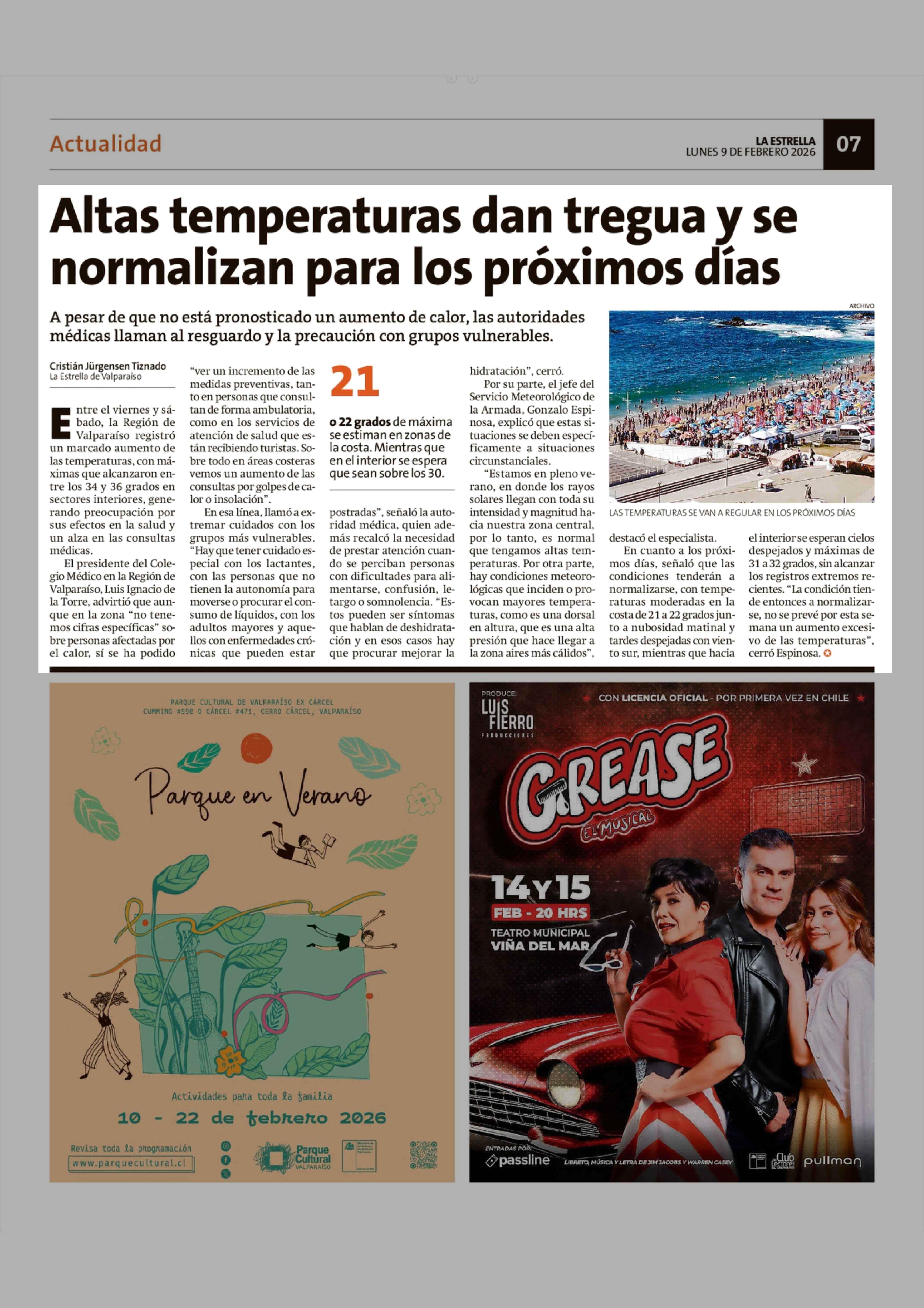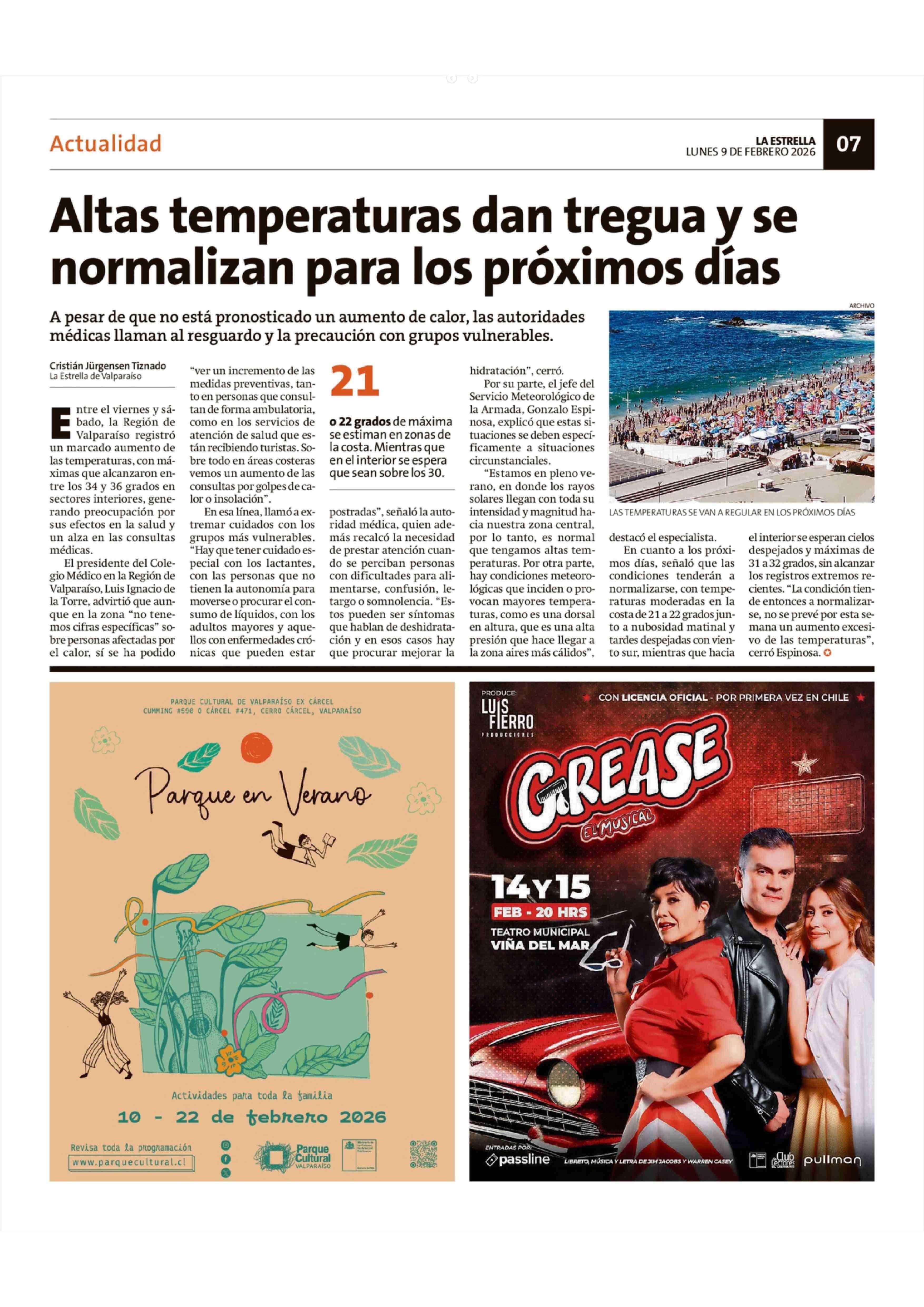 Altas temperaturas dan tregua y se normalizan para los próximos días 09-02-2026 La Estrella de Valparaíso |