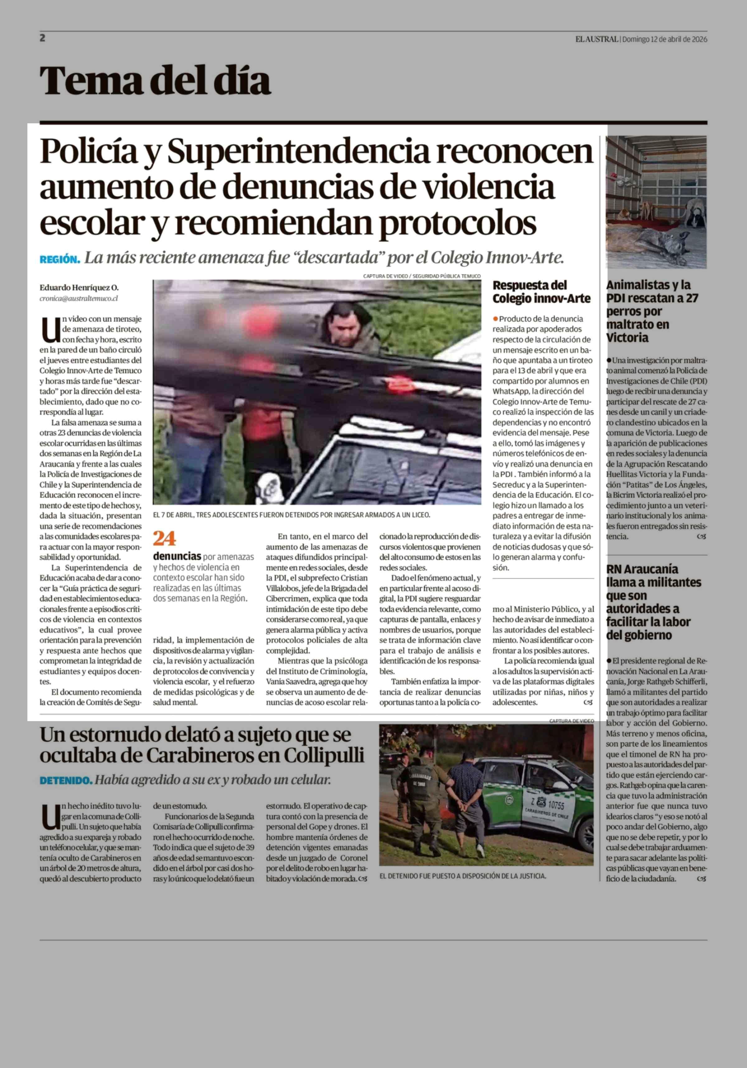 Fecha: 12-04-2026 Sector: Noticia general Región: Región de la Araucanía