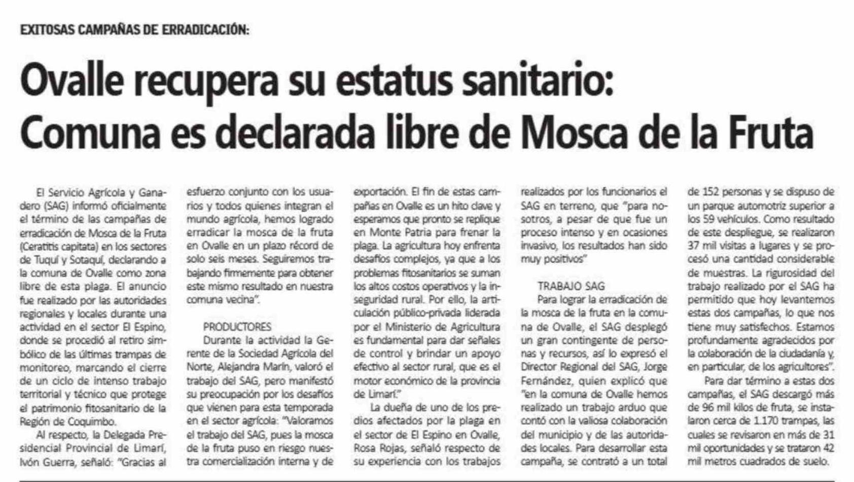 | Título: | Ovalle recupera su estatus sanitario: Comuna es declarada libre de Mosca de la Fruta |