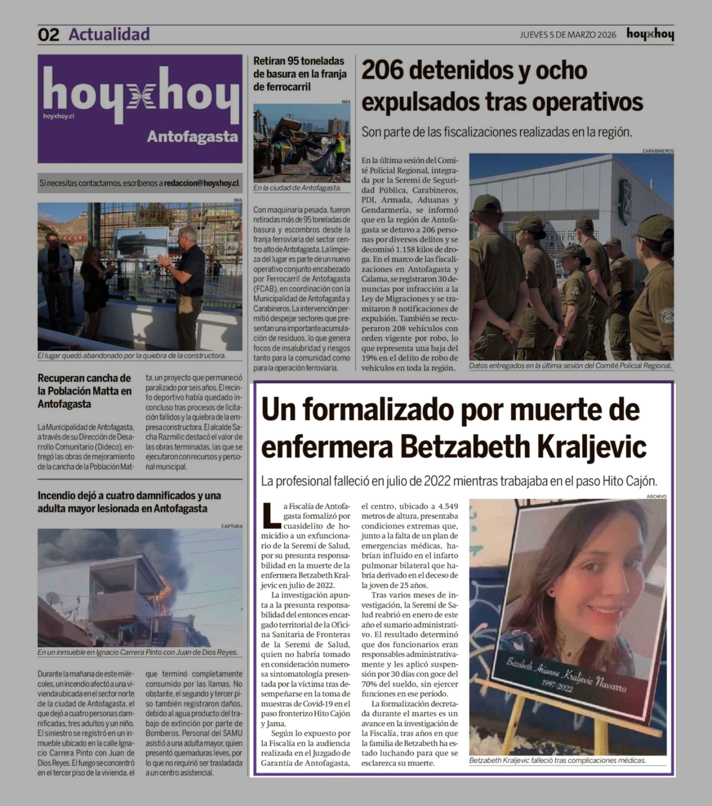 Un formalizado por muerte de enfermera Betzabeth Kraljevic 05-03-2026 Hoy x Hoy Antofagasta |