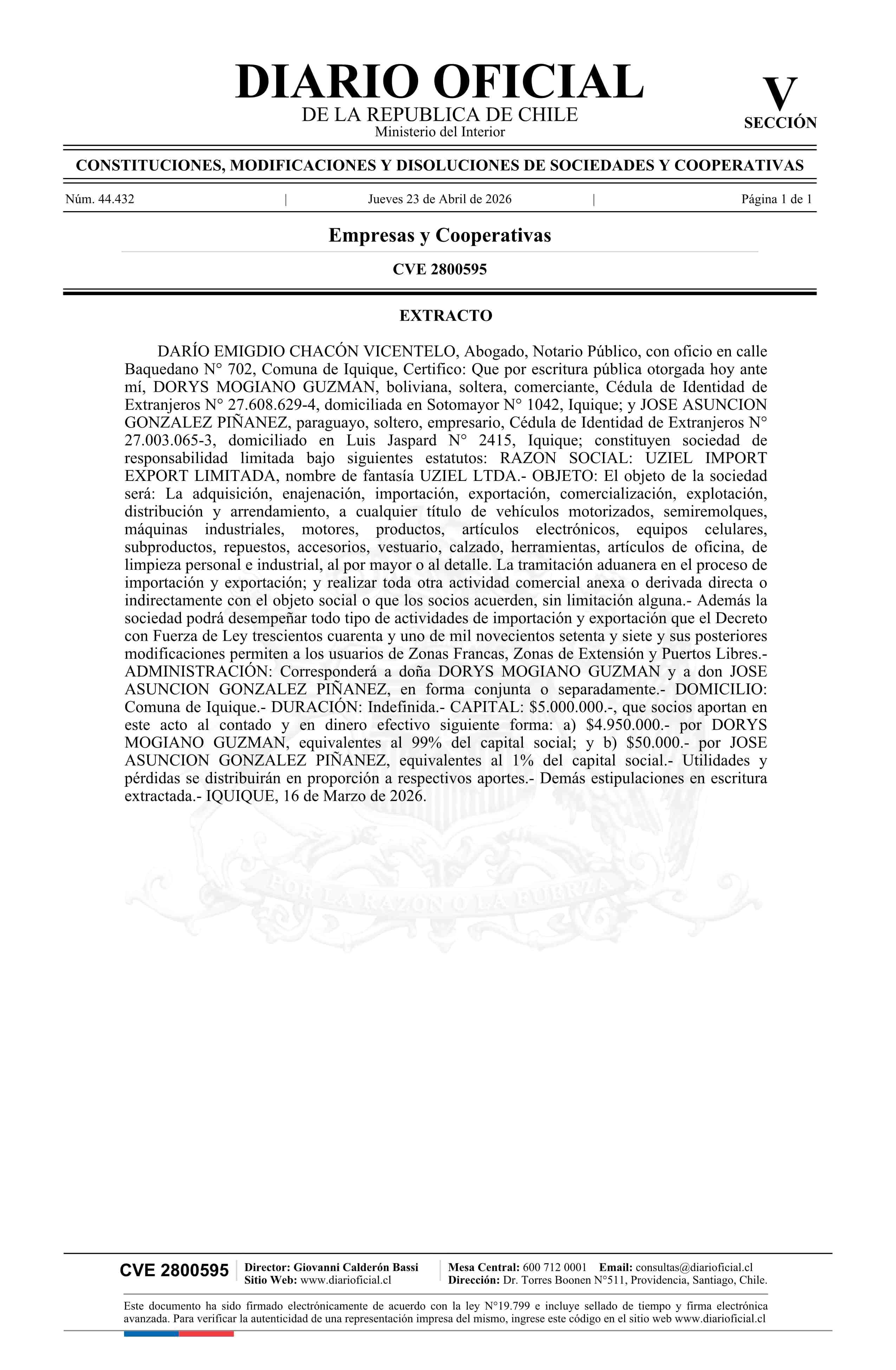 Título: UZIEL IMPORT EXPORT LIMITADA