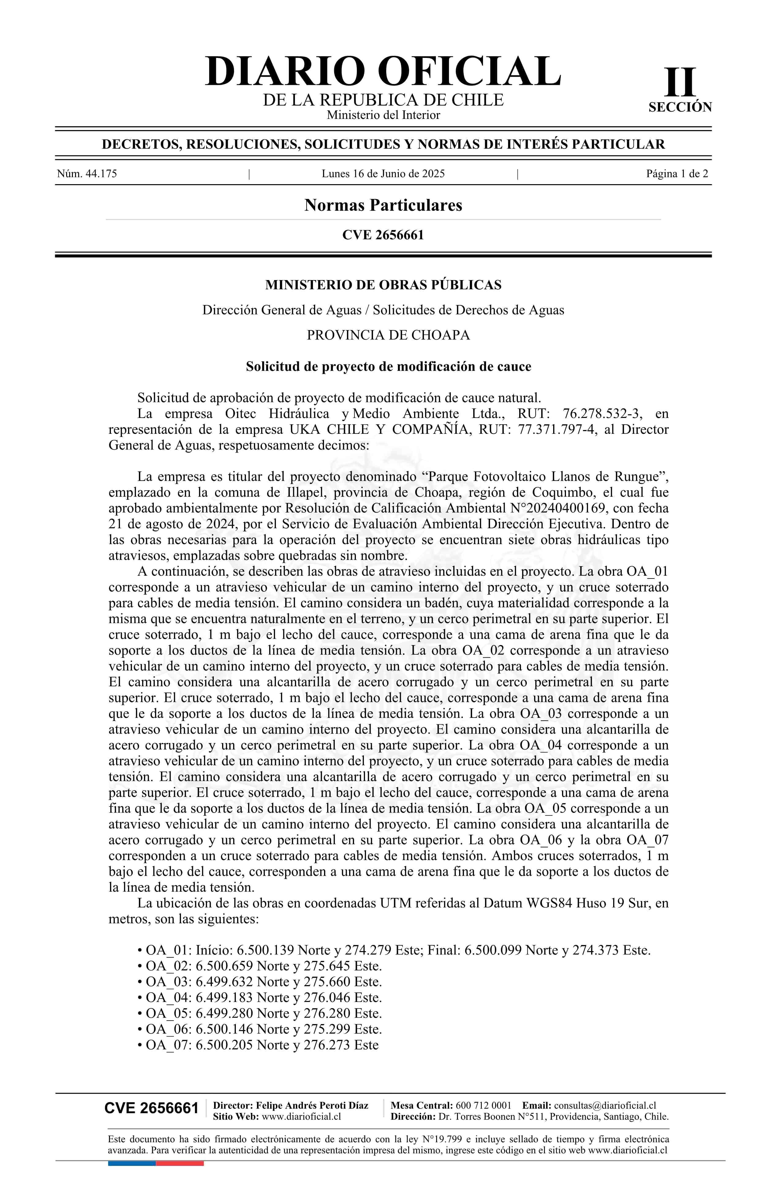 Solicitud UKA Chile y Compañía 16-06-2025 Diario Oficial Edición Electrónica |