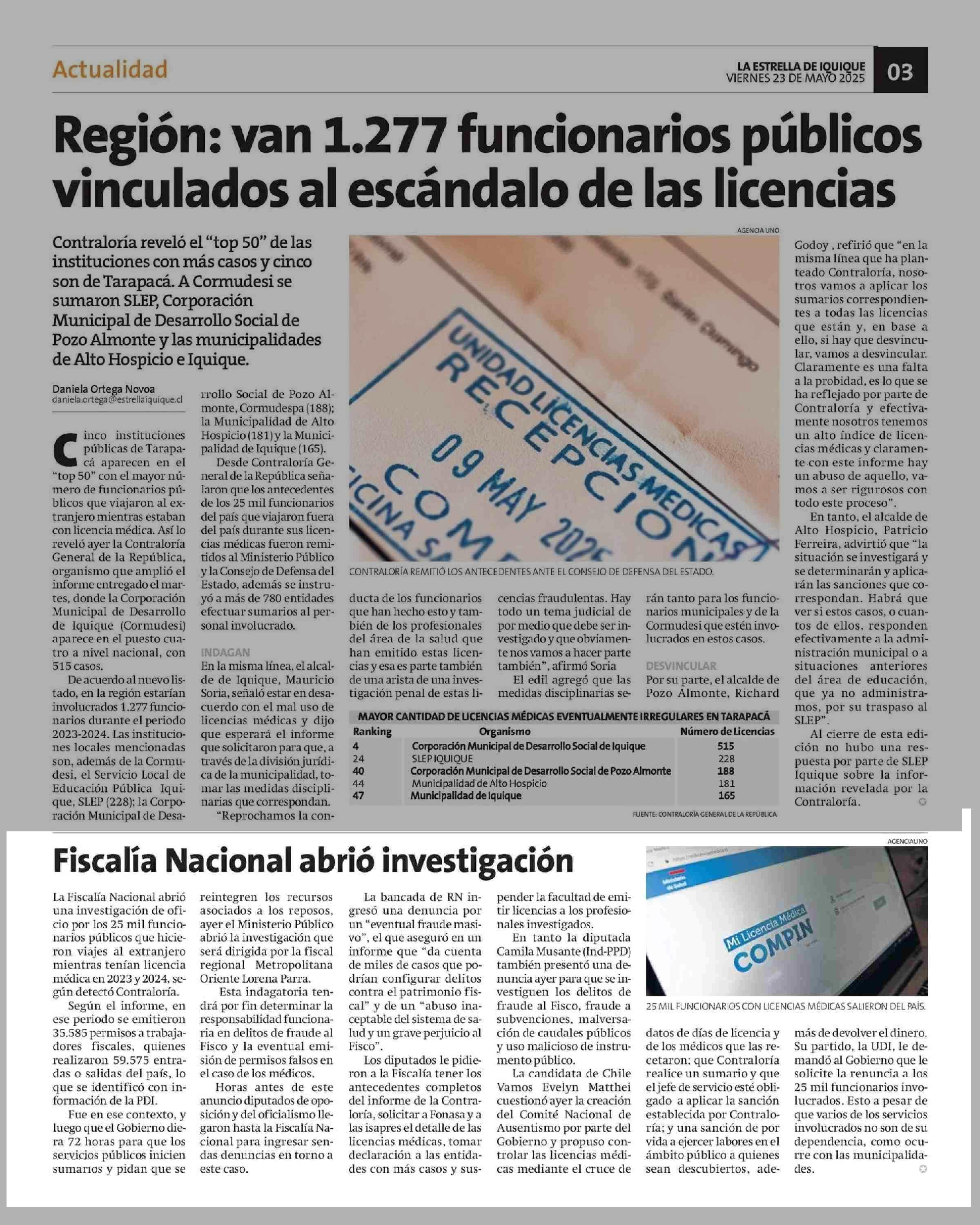 Fiscalía Nacional abrió investigación 23-05-2025 La Estrella de Iquique |