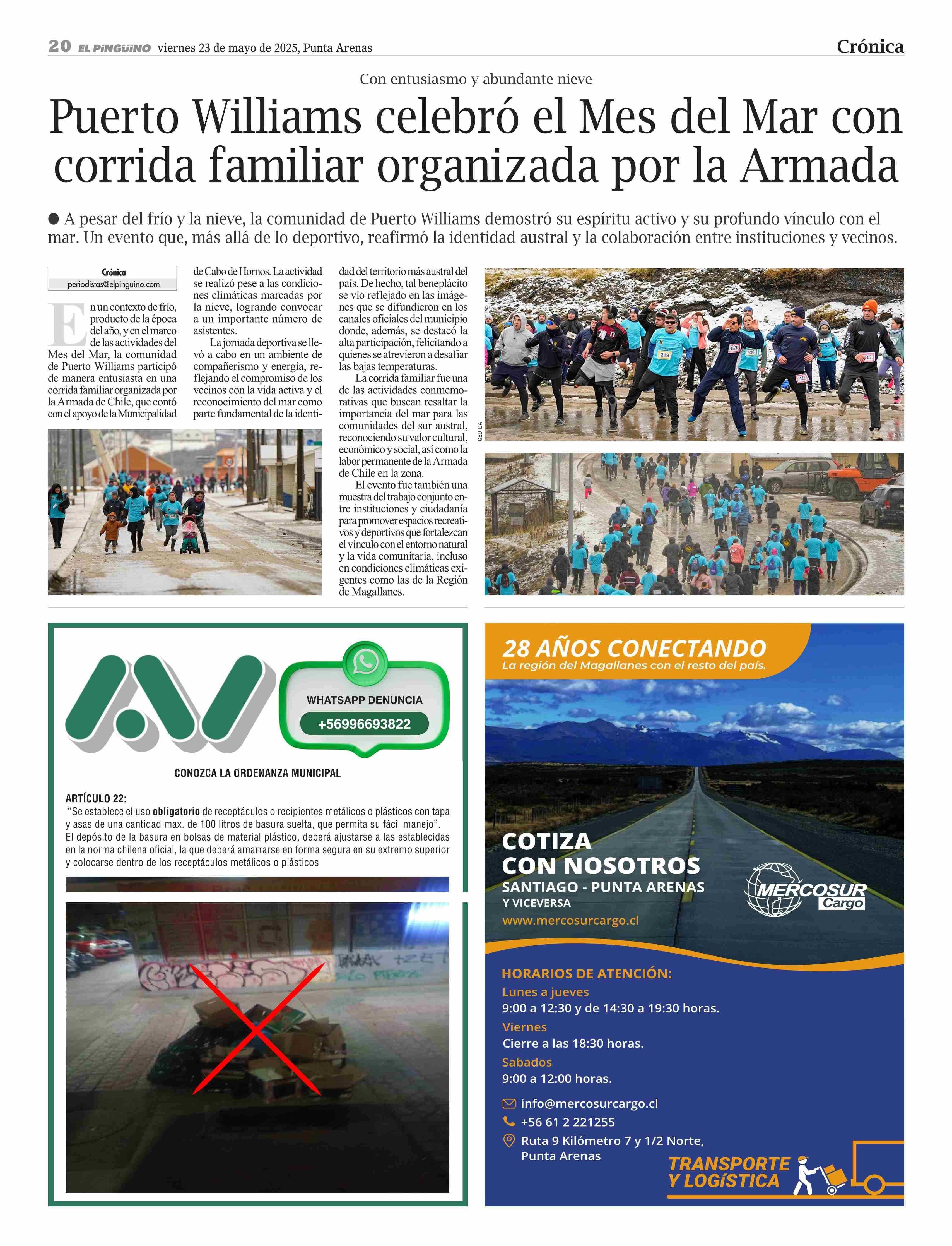 Puerto Williams celebró el Mes del Mar con corrida familiar organizada por la Armada 23-05-2025 El Pingüino |
