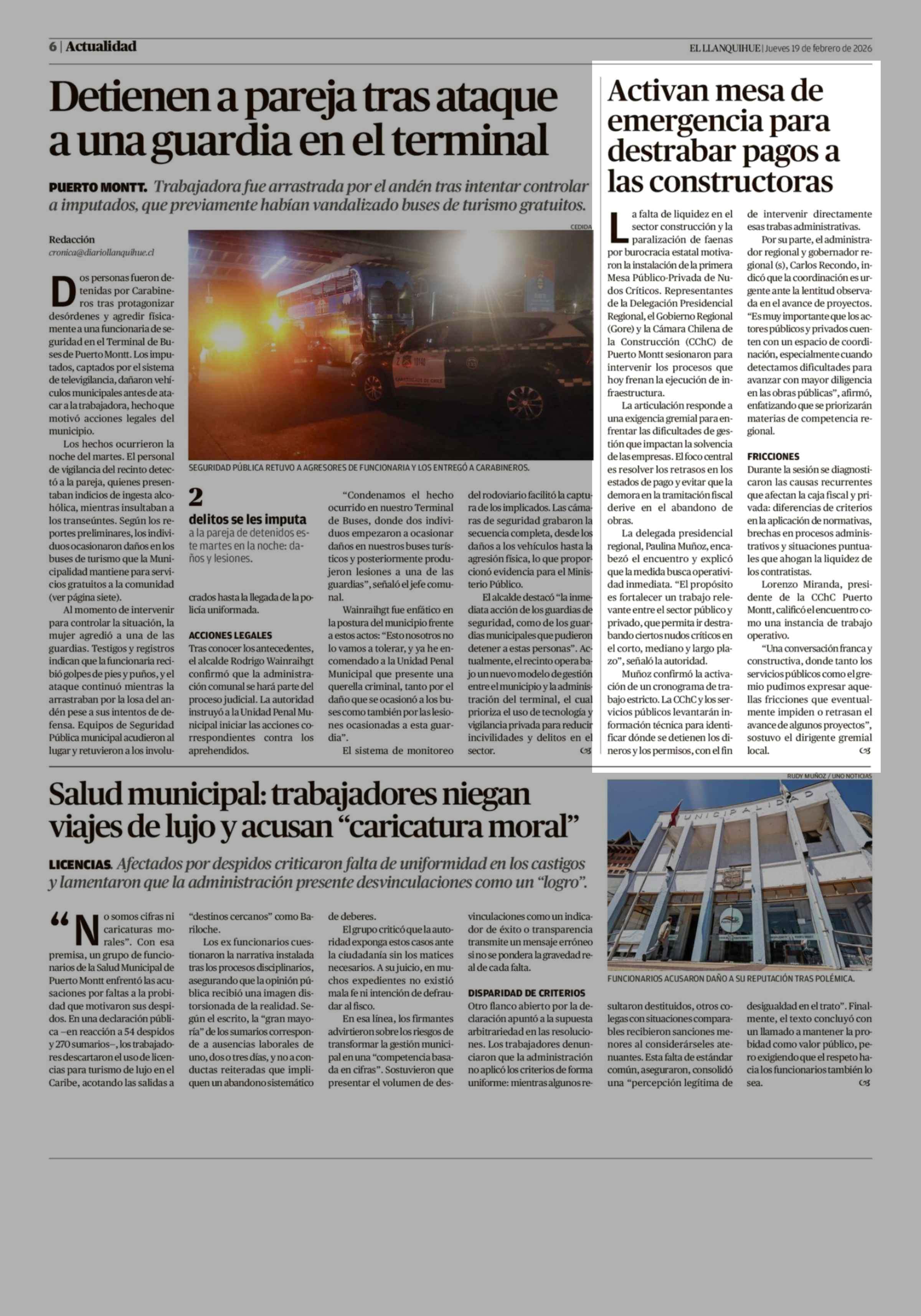 Activan mesa de emergencia para destrabar pagos a las constructoras 19-02-2026 El Llanquihue |