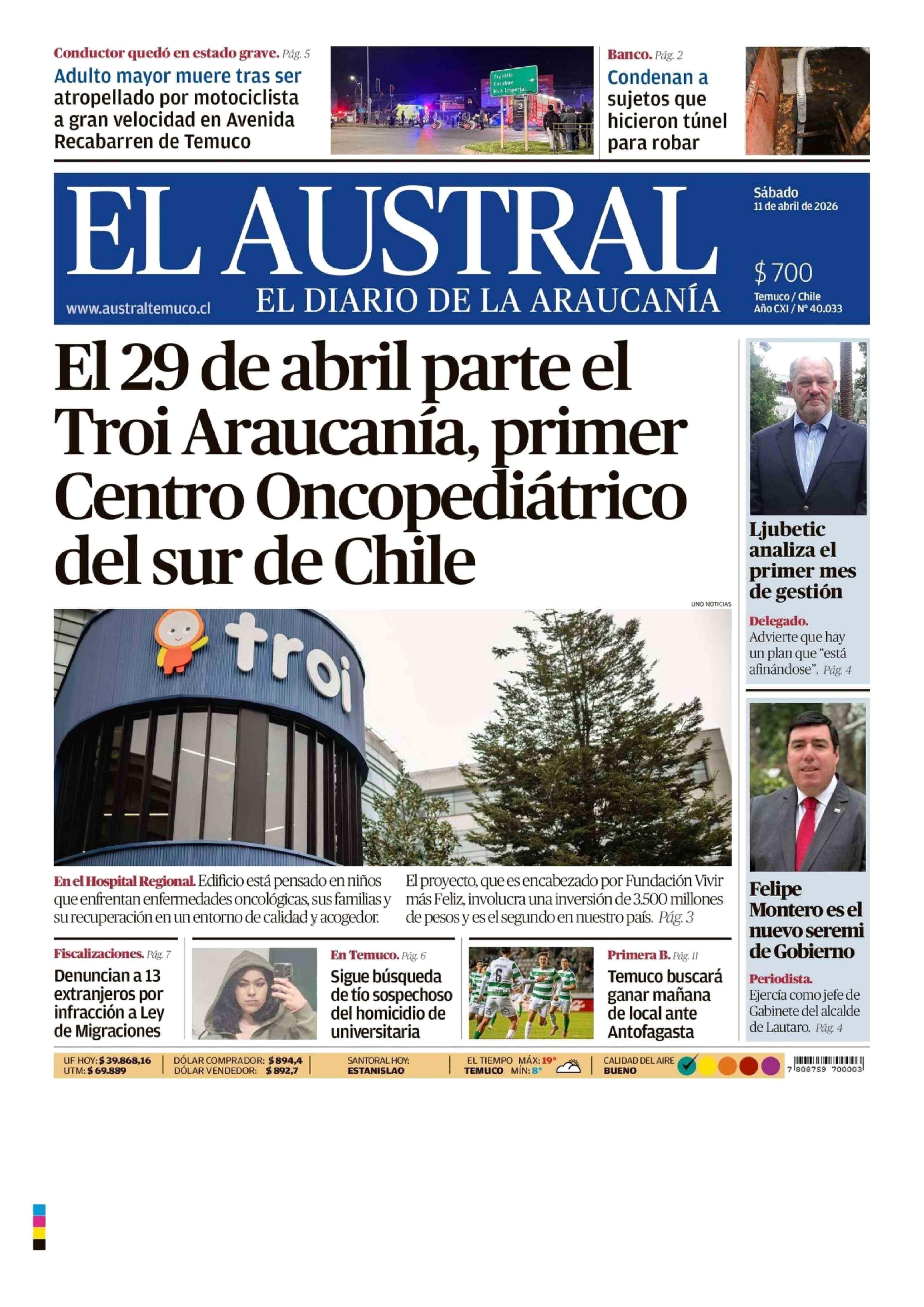 Fecha: 11-04-2026 Sector: Portada Región: Región de la Araucanía