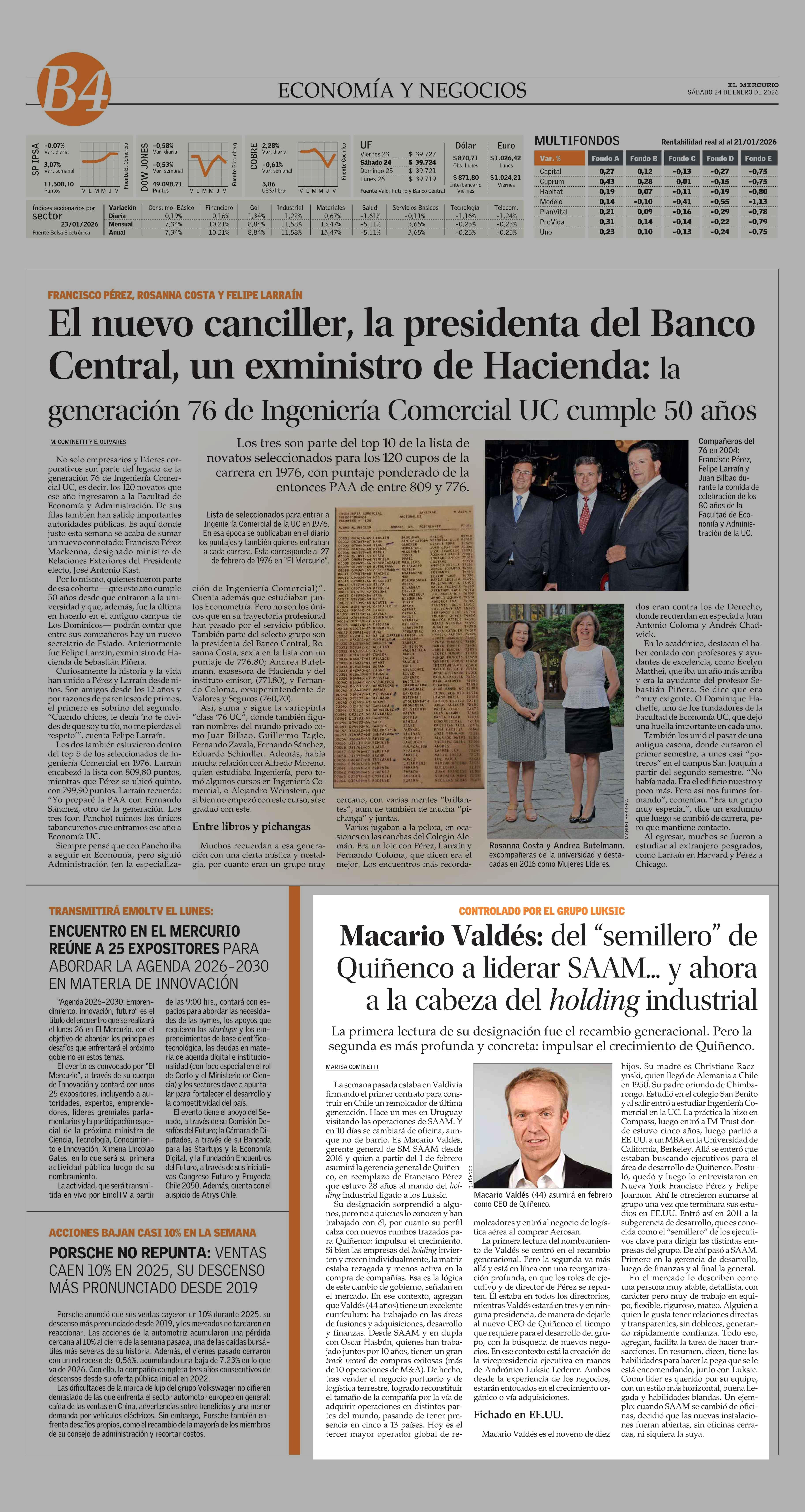 Macario Valdés: del "semillero" de Quiñenco a liderar SAAM... y ahora a la cabeza del holding industrial 24-01-2026 El Mercurio |