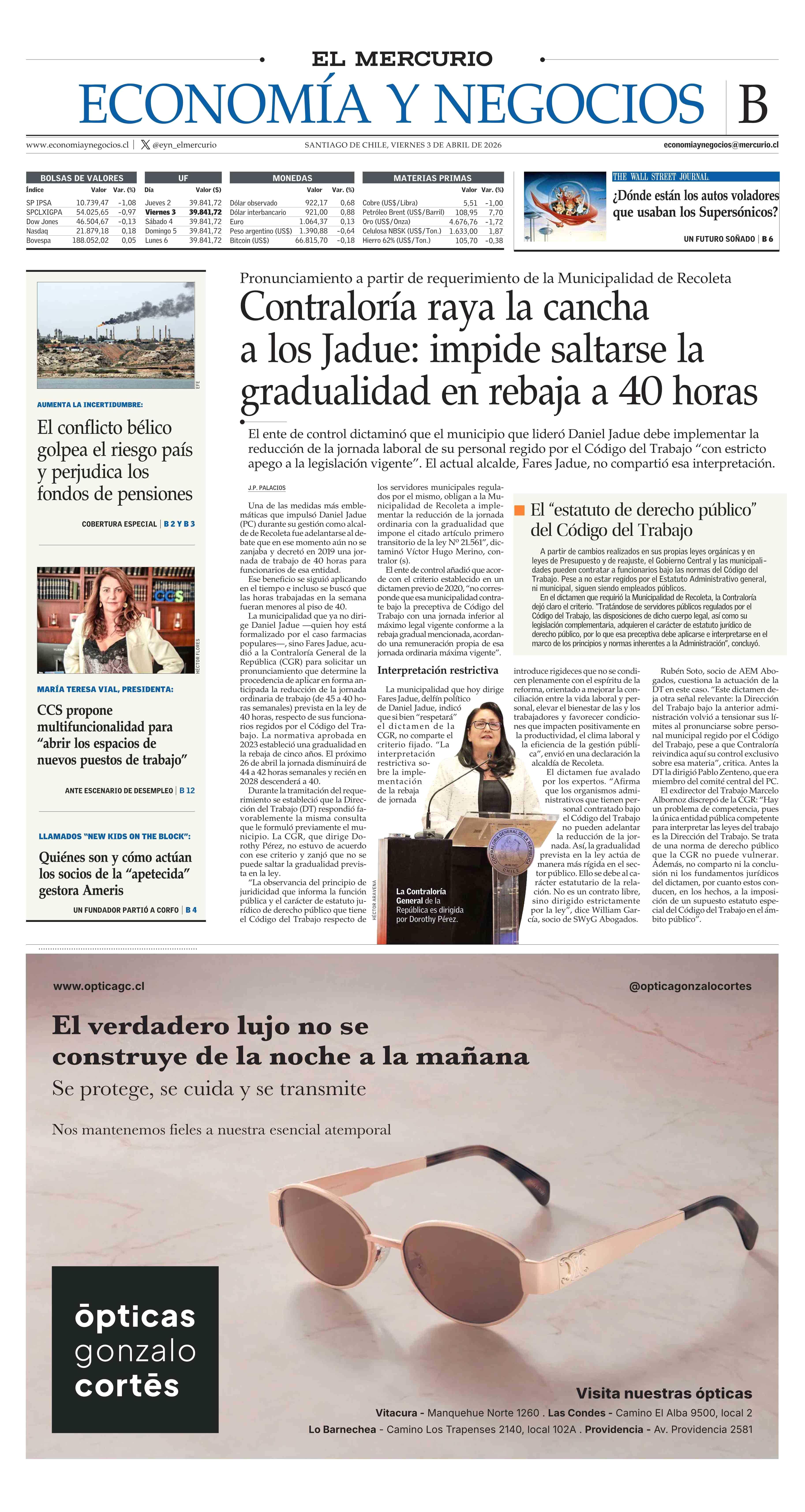 | Fecha: | 03-04-2026 | Sector: | Portada | Región: | Región Metropolitana de Santiago |