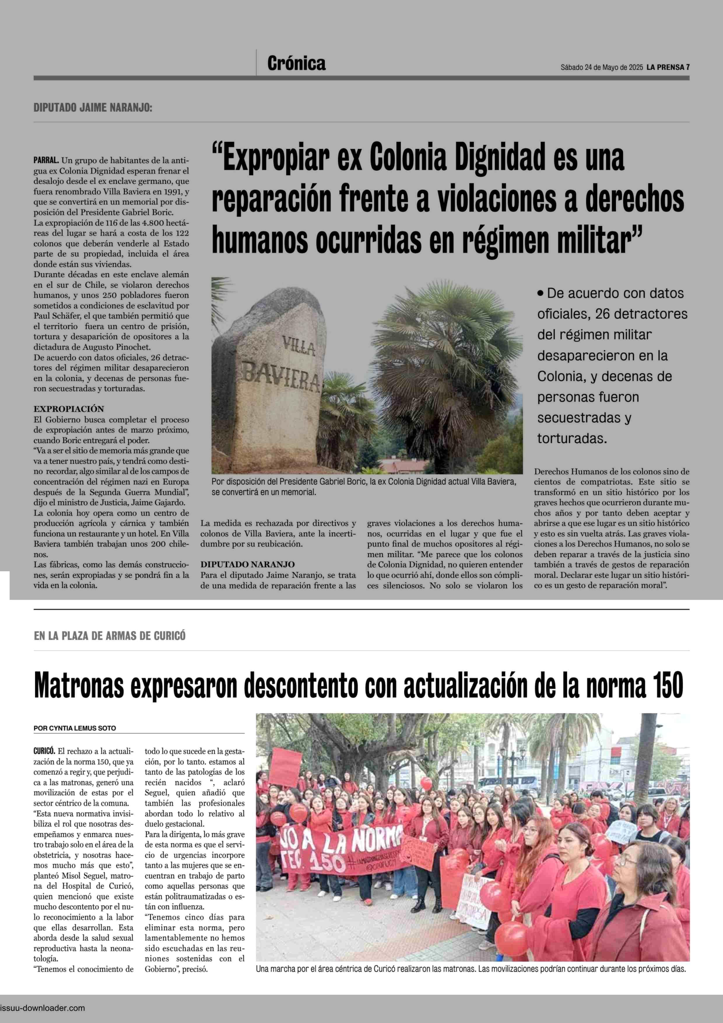 Matronas expresaron descontento con actualización de la norma 150 24-05-2025 La Prensa de Curicó |